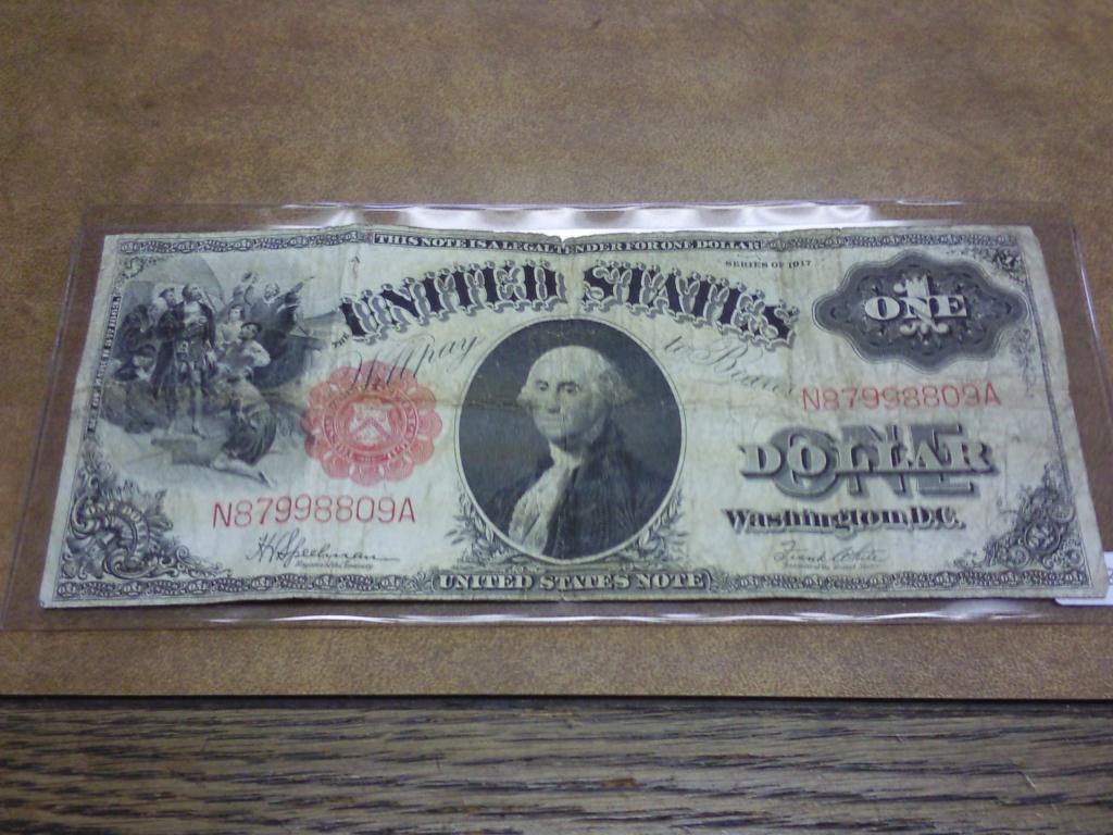 1917 US LARGE SIZE $1 NOTE RED SEAL