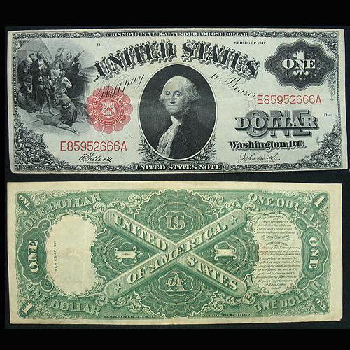 1917 United States one dollar note; red seal; (folded; no holes or tears)