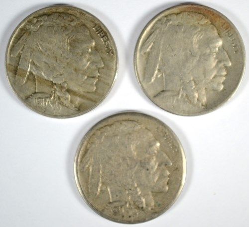 1917 VF, 1917-D FINE & 1917-S VF BUFFALO NICKELS
