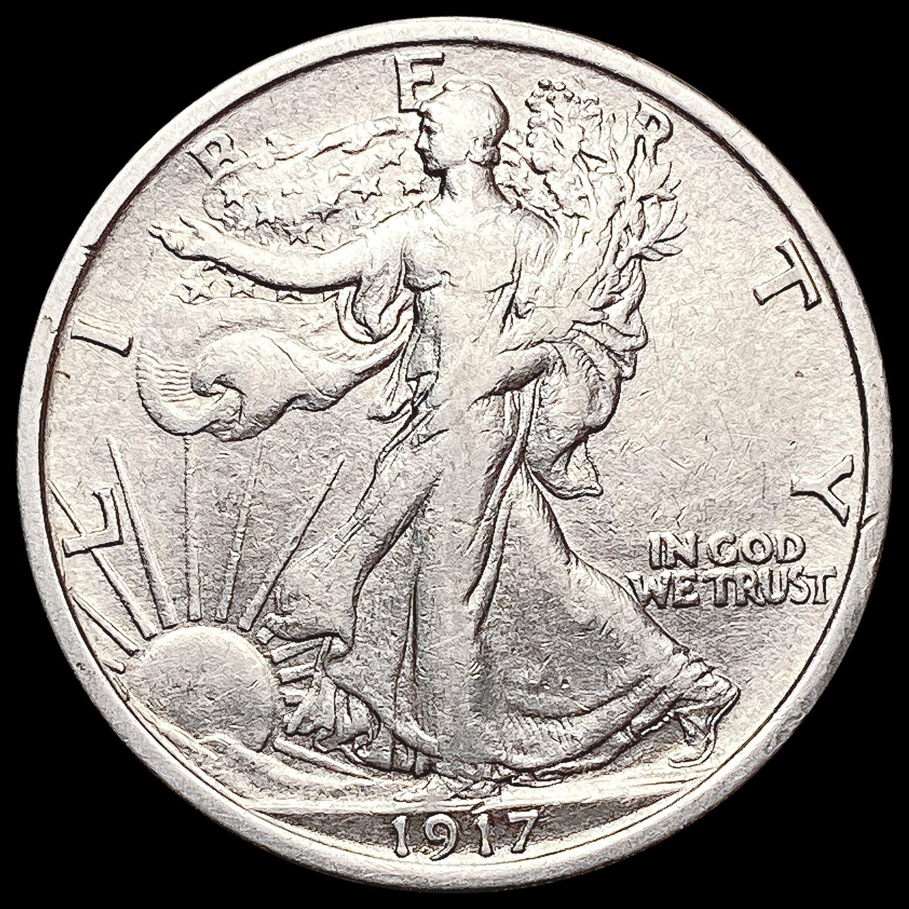 1917 Walking Liberty Half Dollar CLOSELY UNCIRCULA