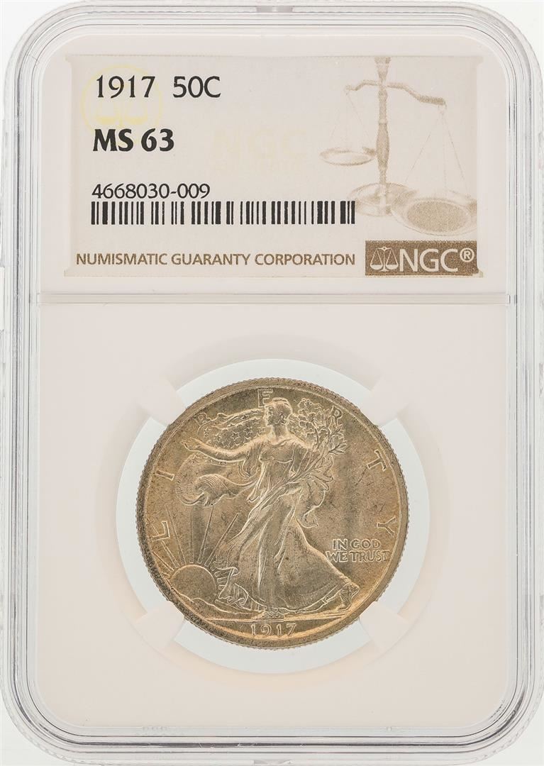 One 1917 Walking Liberty Half Dollar Coin NGC MS63. NGC Certified.