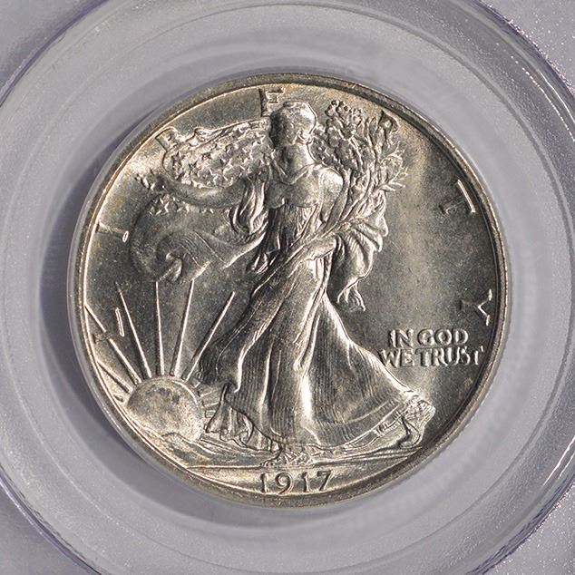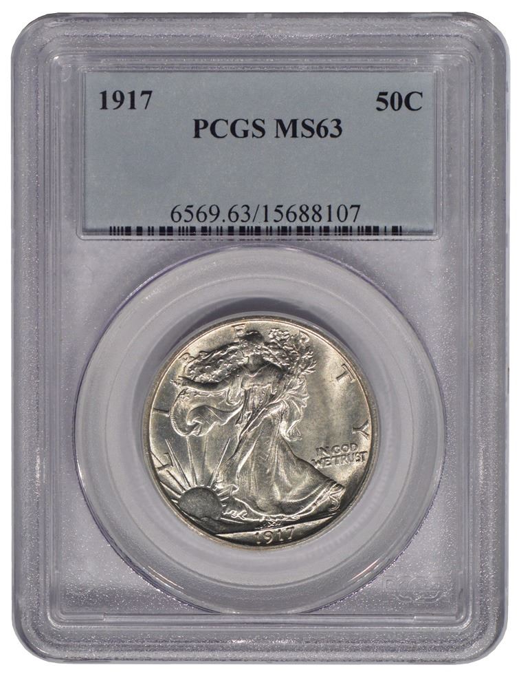 One 1917 Walking Liberty Half Dollar Coin PCGS MS63.