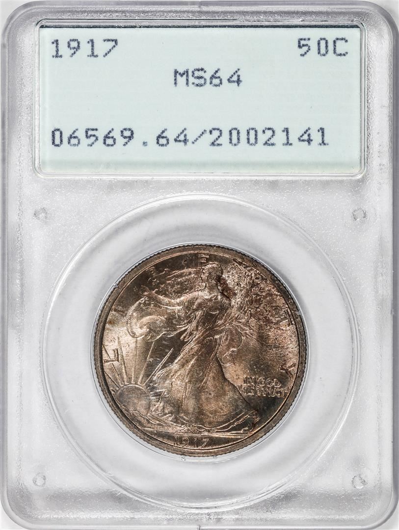 1917 Walking Liberty Half Dollar Coin PCGS MS64 Green Rattler Holder