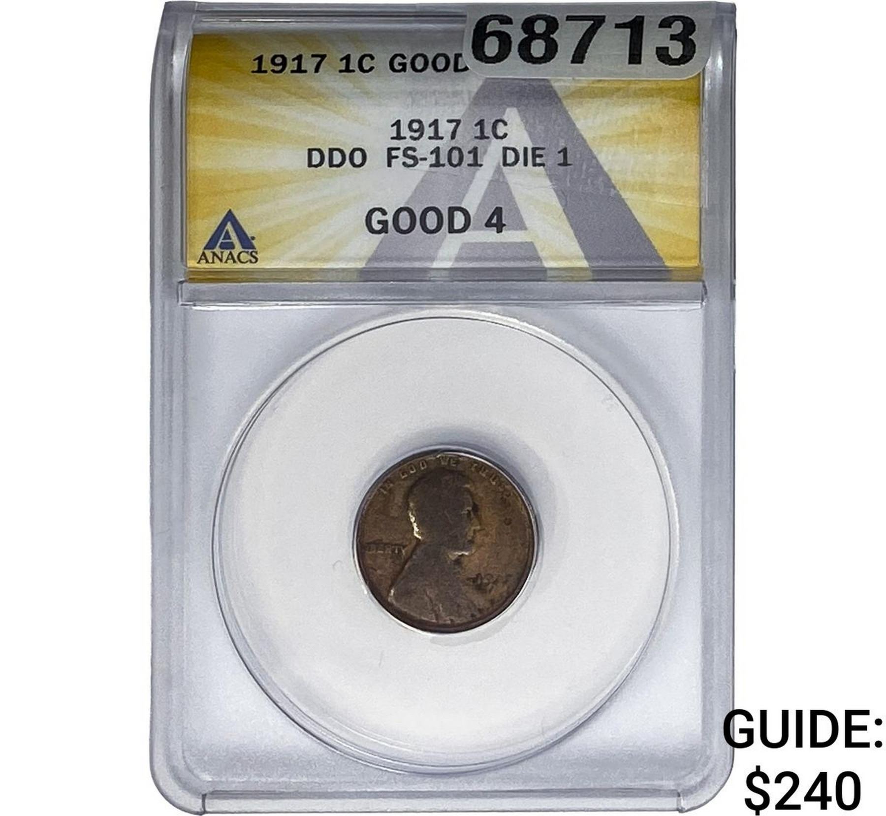 1917 Wheat Cent ANACS G4 DDO FS-101 DIE 1