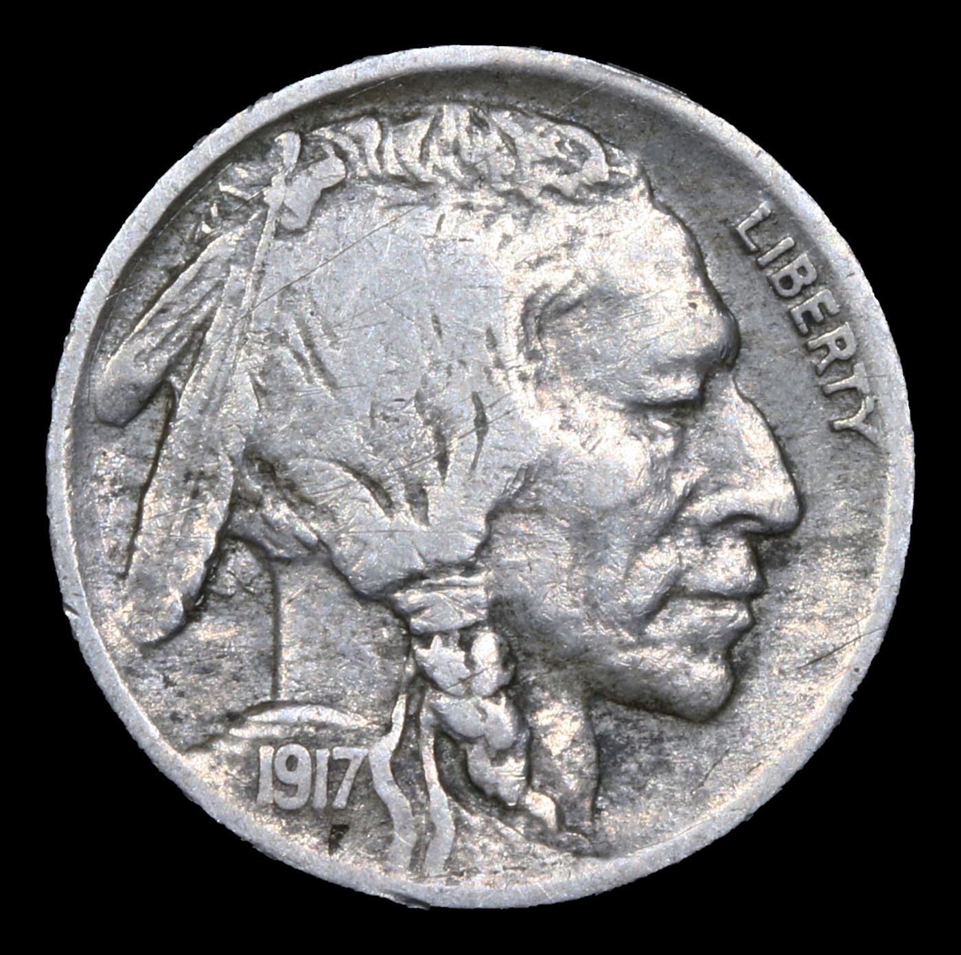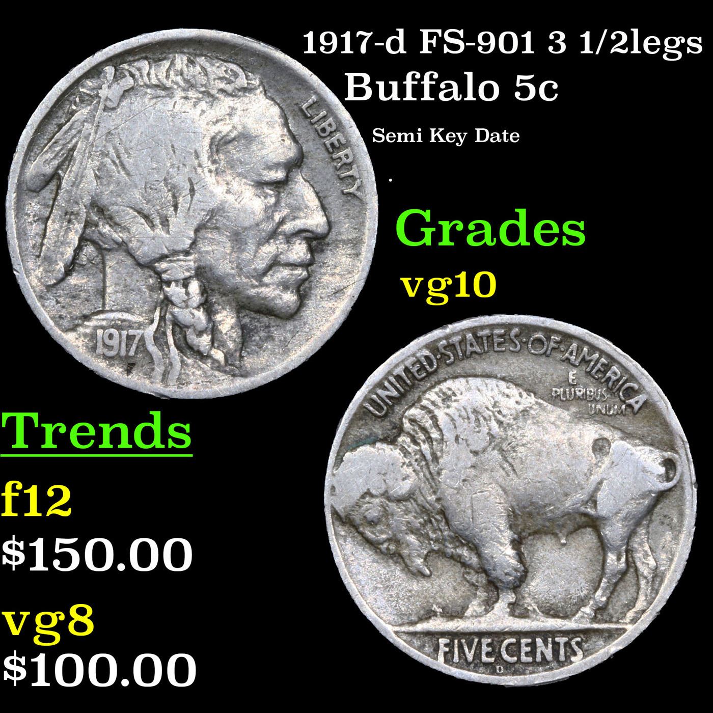 1917-d FS-901 3 1/2legs Buffalo Nickel 5c Grades vg+.