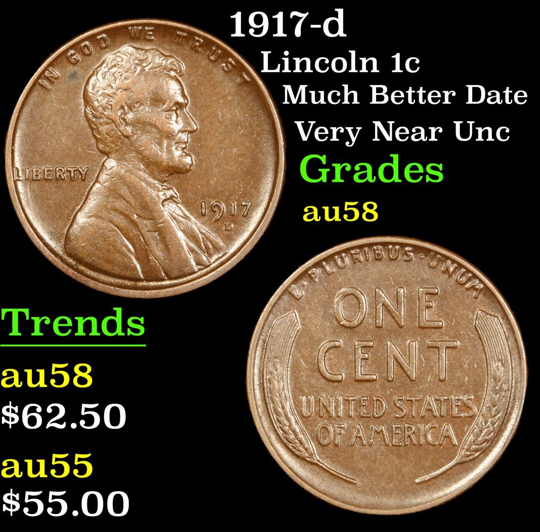 1917-d Much Better Date Very Near Unc Lincoln Cent 1c Grades Choice AU/BU Slider.