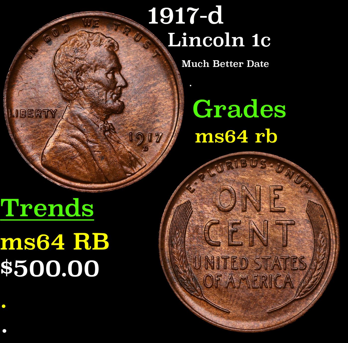 1917-d Lincoln Cent 1c Grades Choice Unc RB.