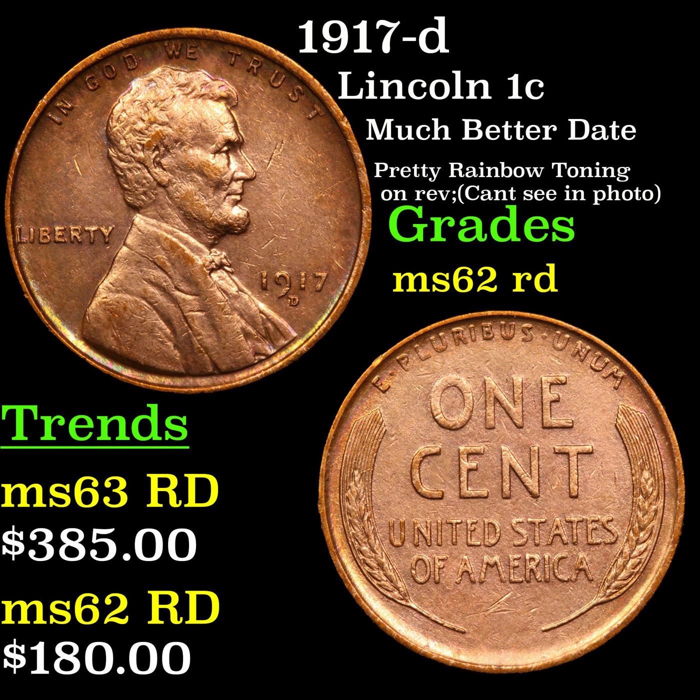 1917-d Lincoln Cent 1c Grades Select Unc RD.