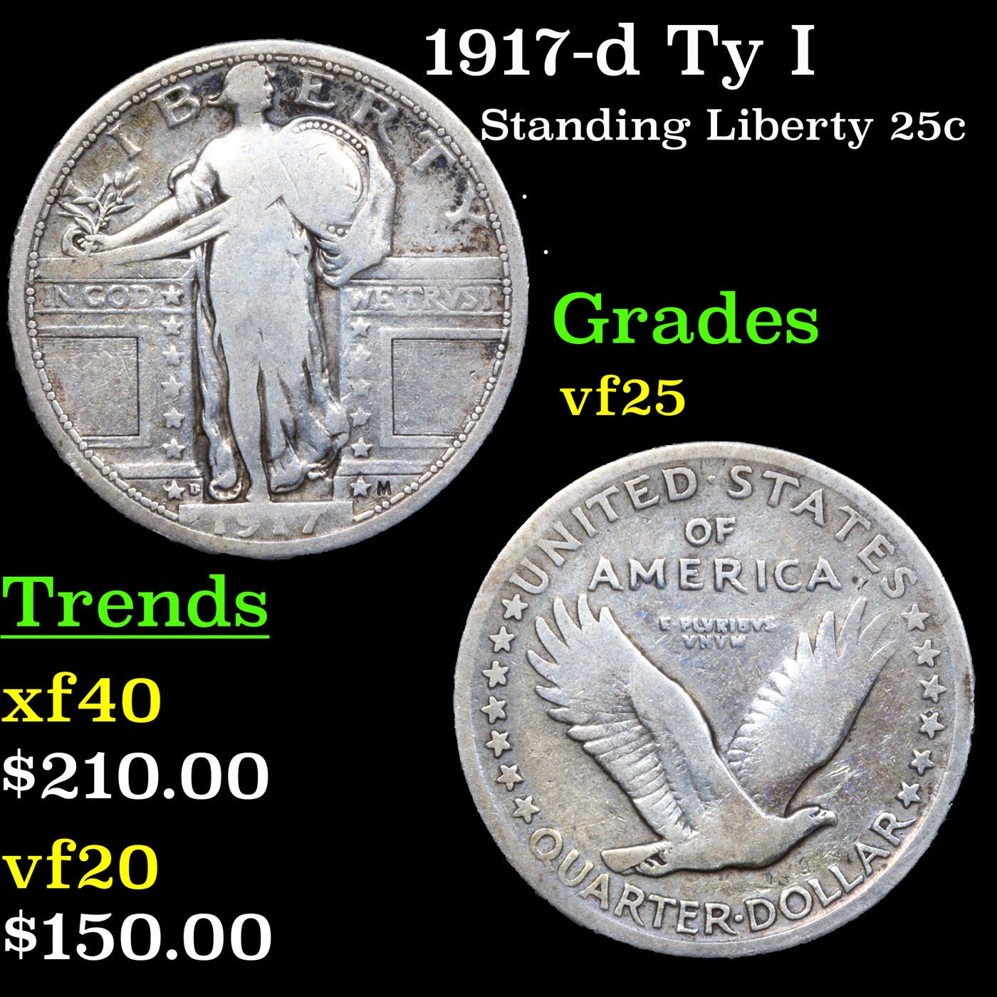 1917-d Ty I Standing Liberty Quarter 25c Grades vf+.