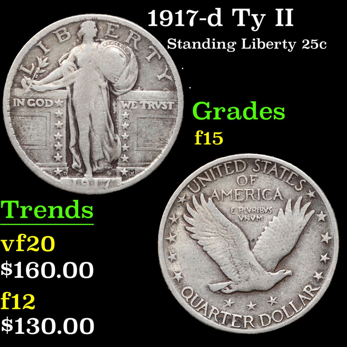 1917-d Ty II Standing Liberty Quarter 25c Grades f+.