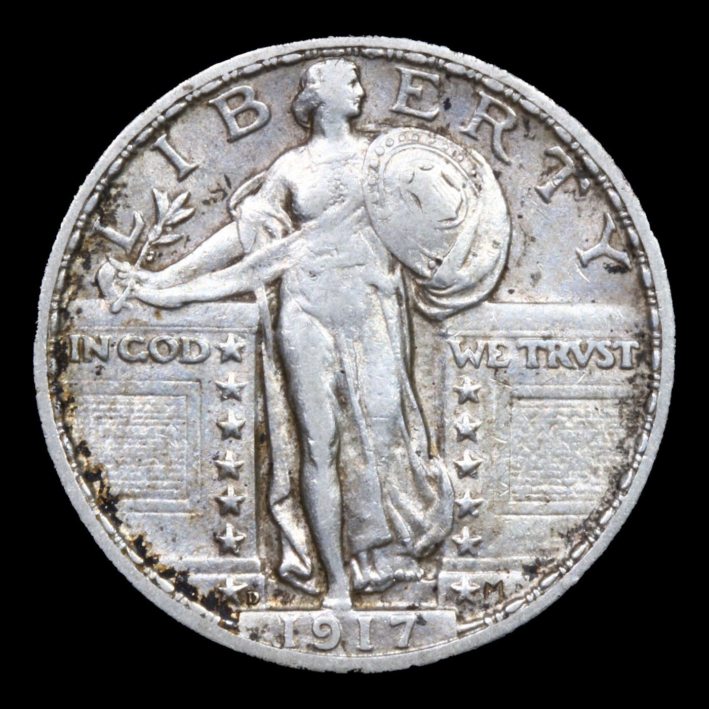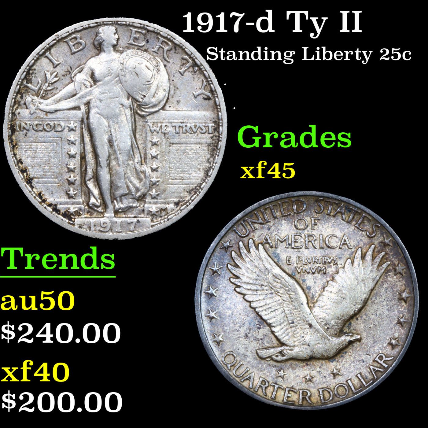 1917-d Ty II Standing Liberty Quarter 25c Grades xf+.
