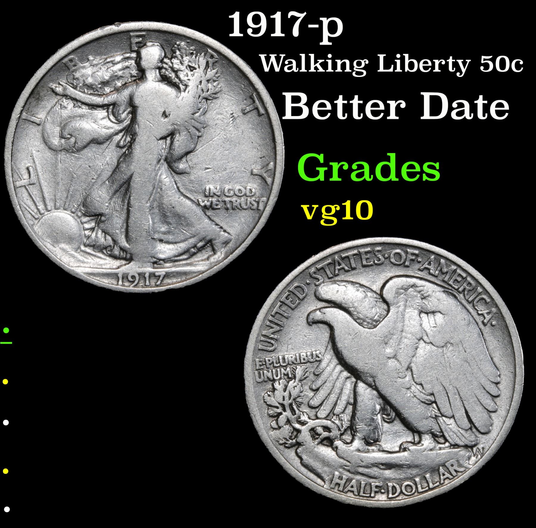 1917-p Better Date . Walking Liberty Half Dollar 50c Grades vg+.