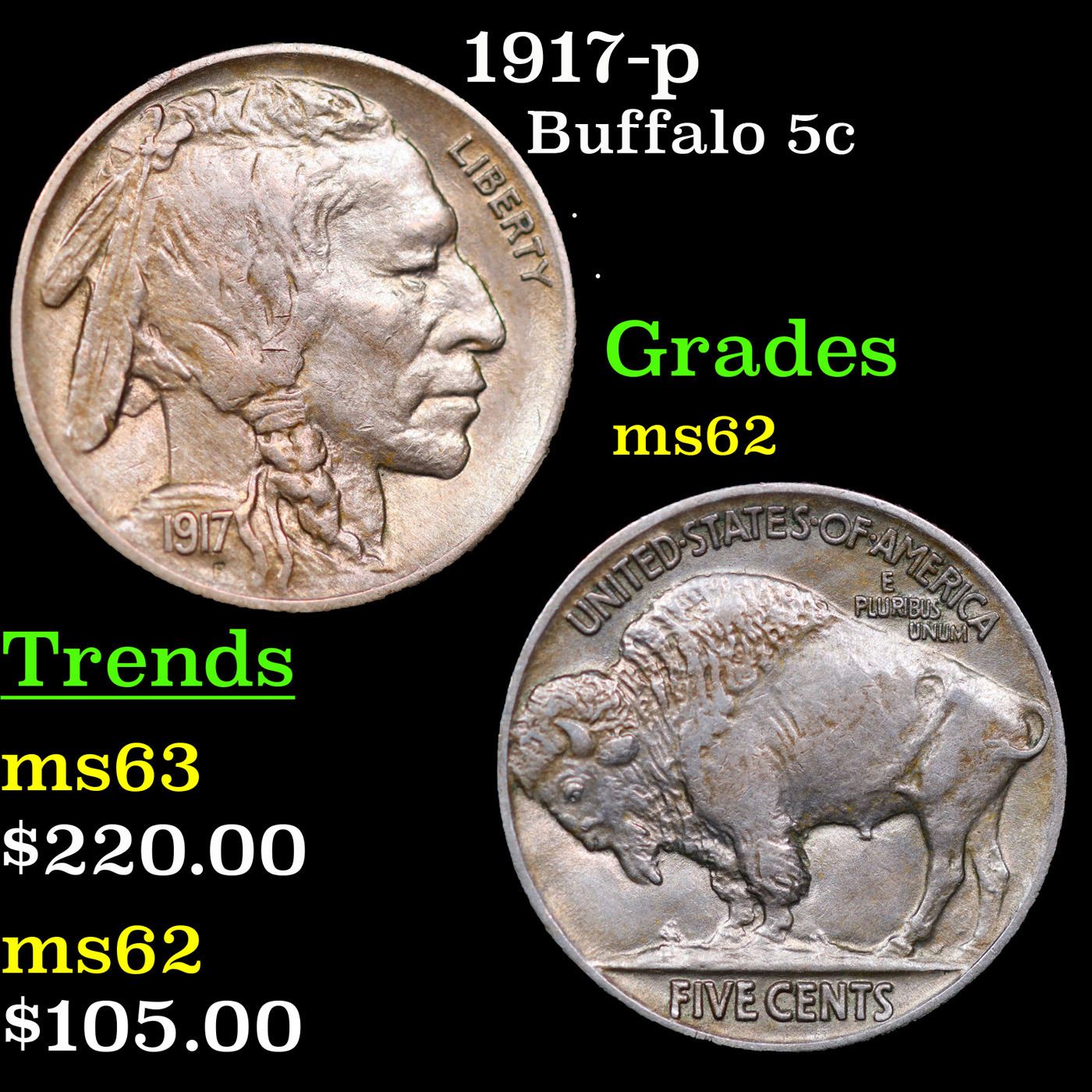 1917-p Buffalo Nickel 5c Grades Select Unc.