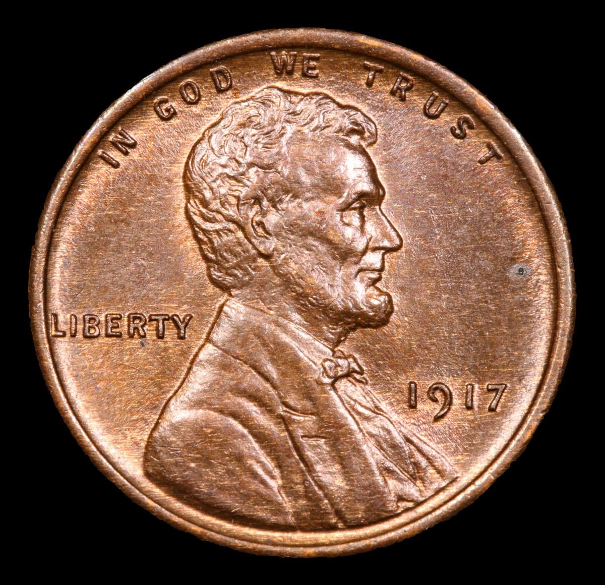1917-p Lots of red peeking thru Very Near Gem Lincoln Cent 1c Grades Choice+ Unc BN.