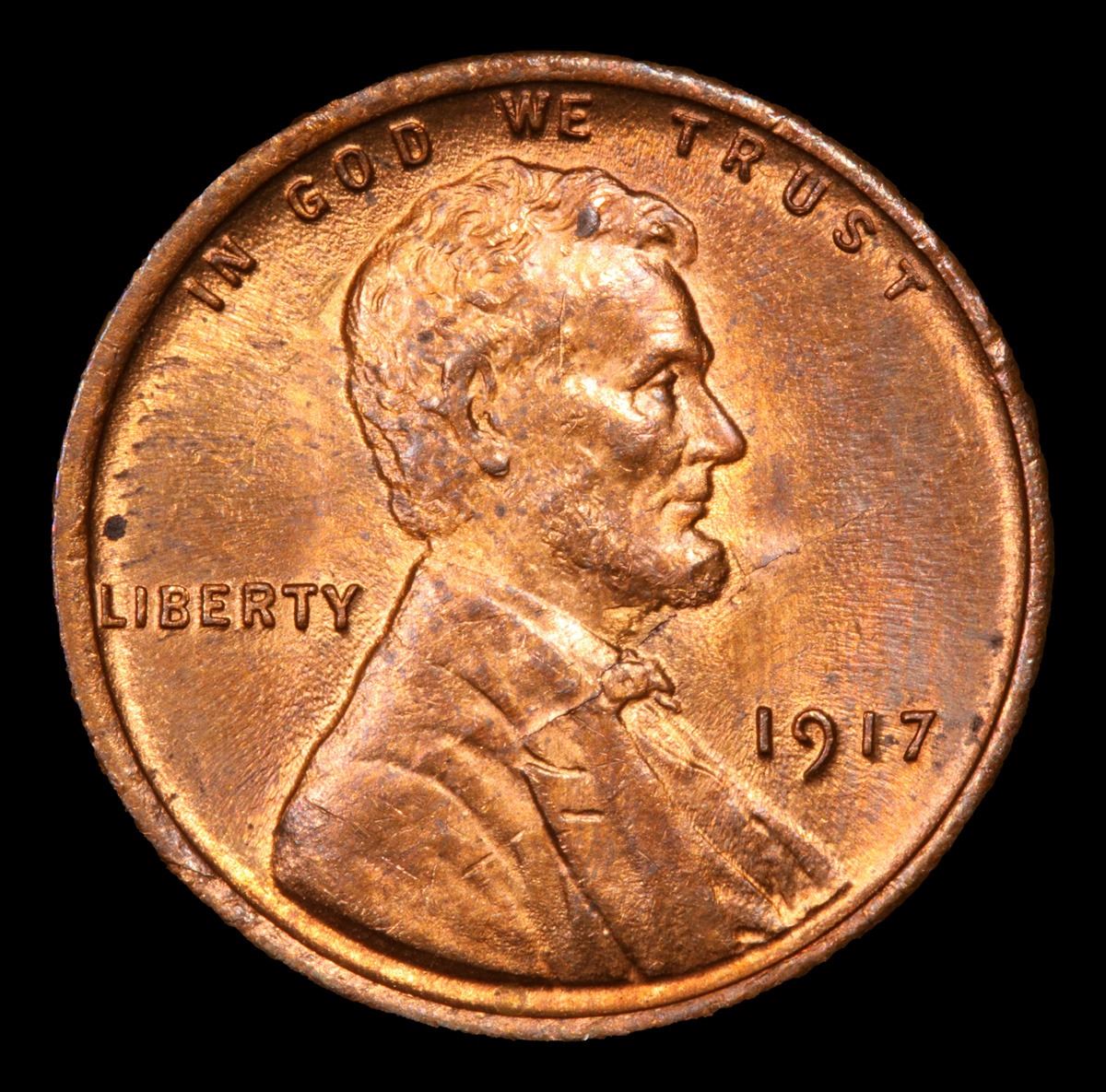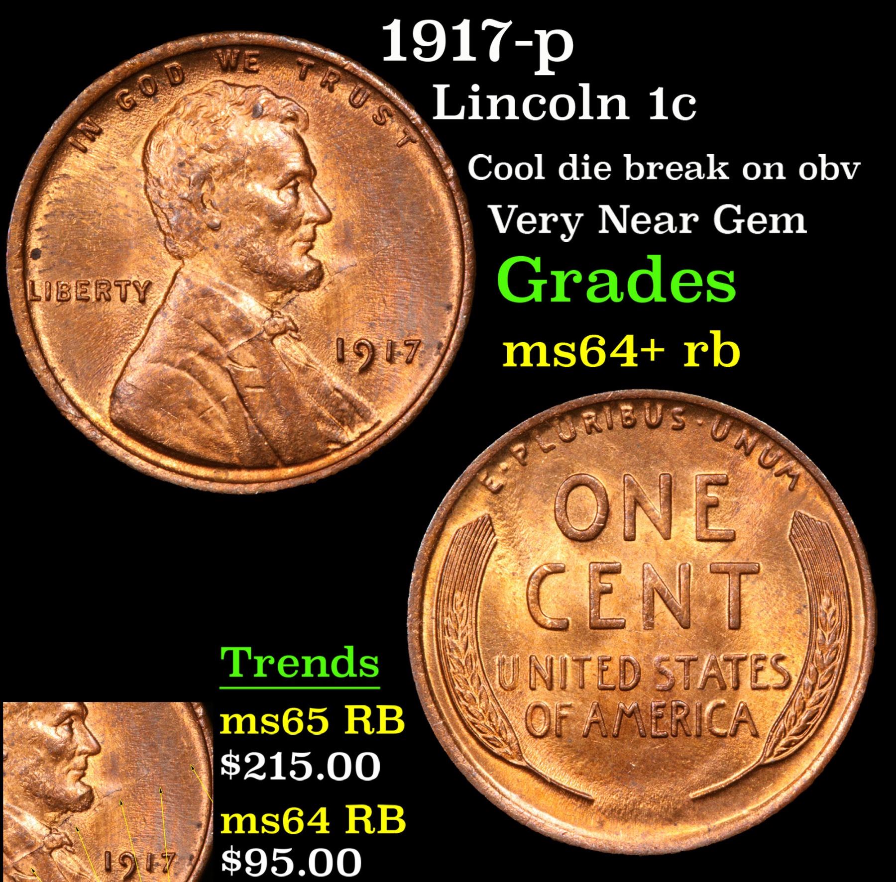 1917-p Cool die break on obv Very Near Gem Lincoln Cent 1c Grades Choice+ Unc RB.         A Corey's Pick