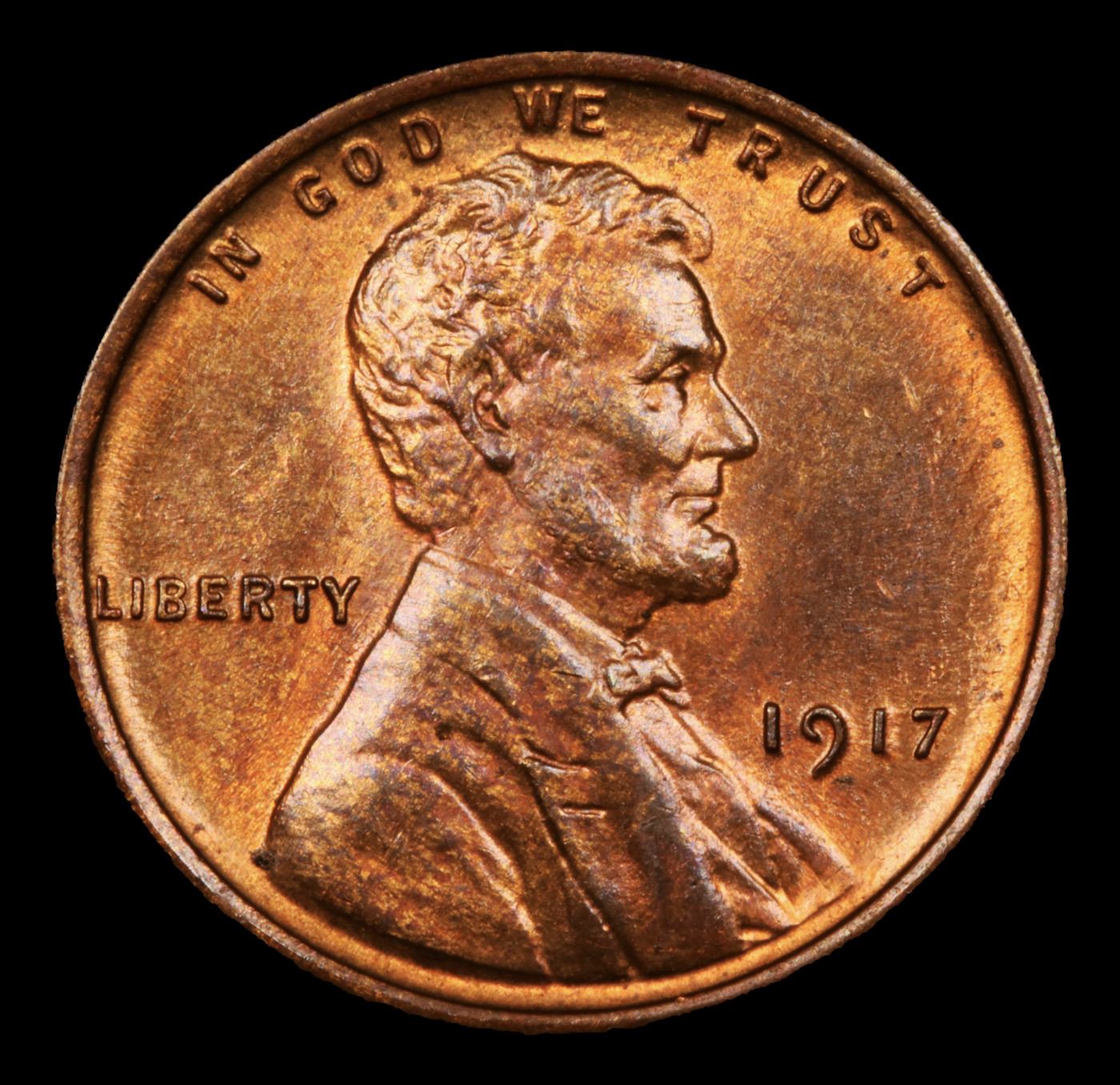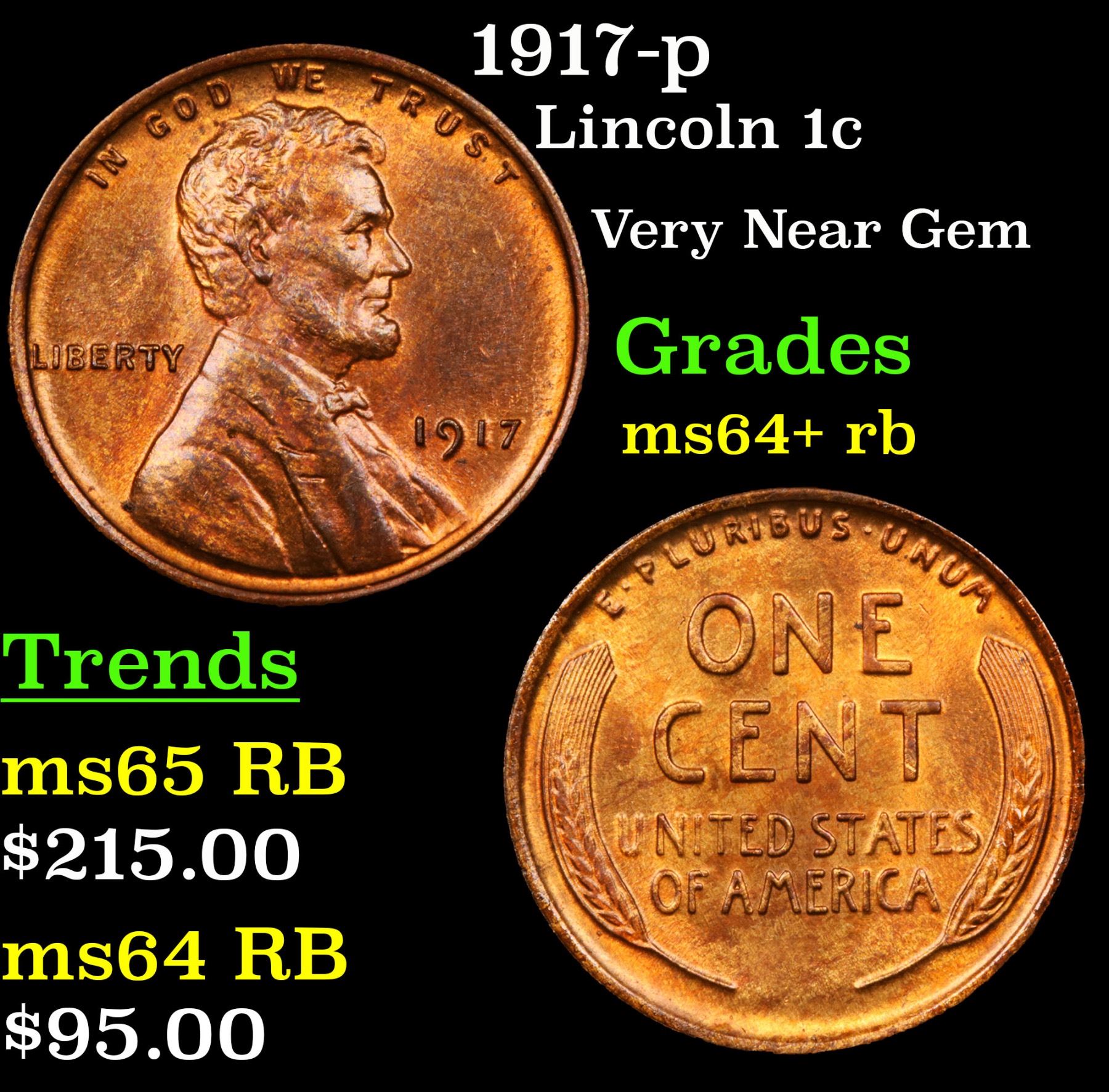 1917-p Lincoln Cent 1c Grades Choice+ Unc RB. Very Near Gem