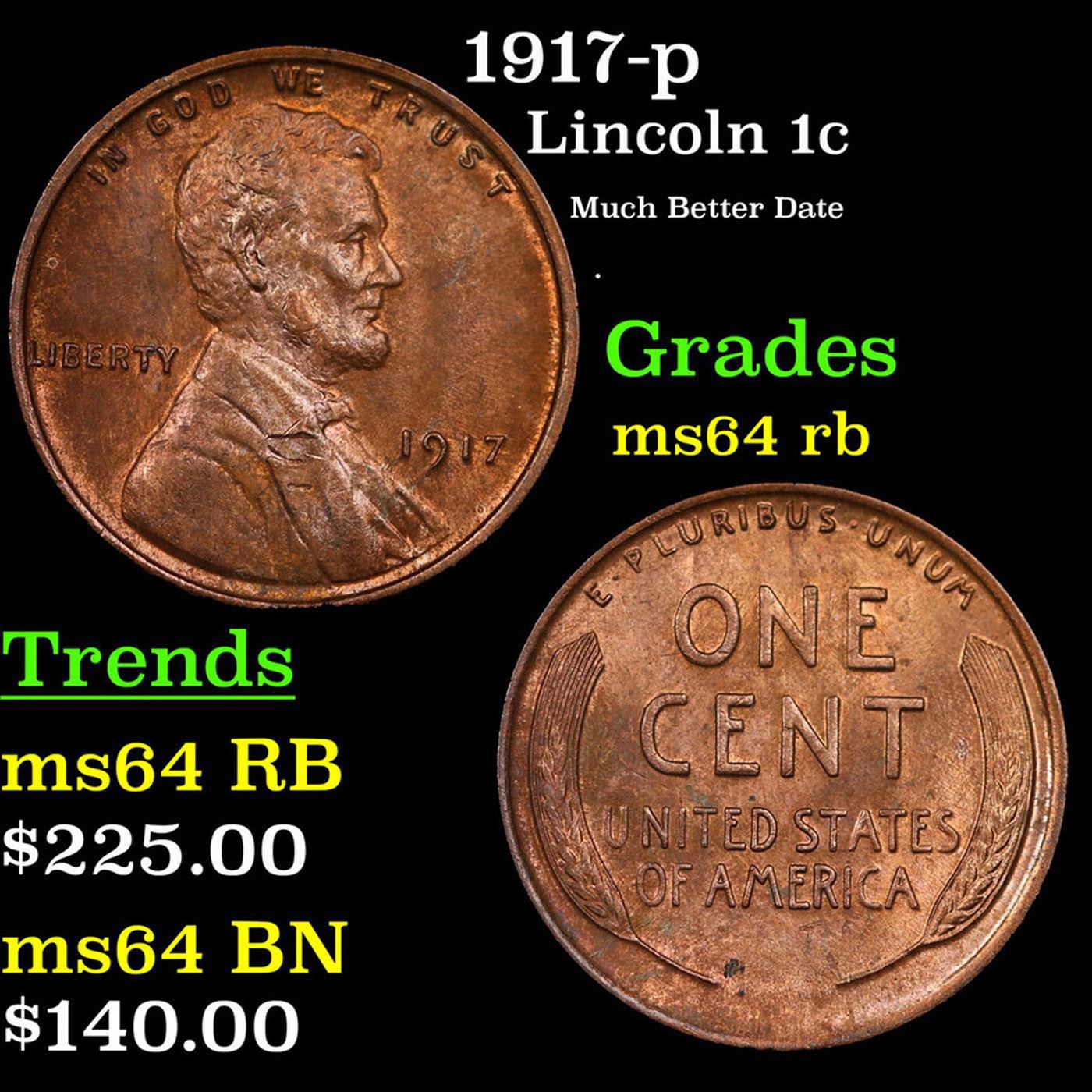 1917-p Lincoln Cent 1c Grades Choice Unc RB.