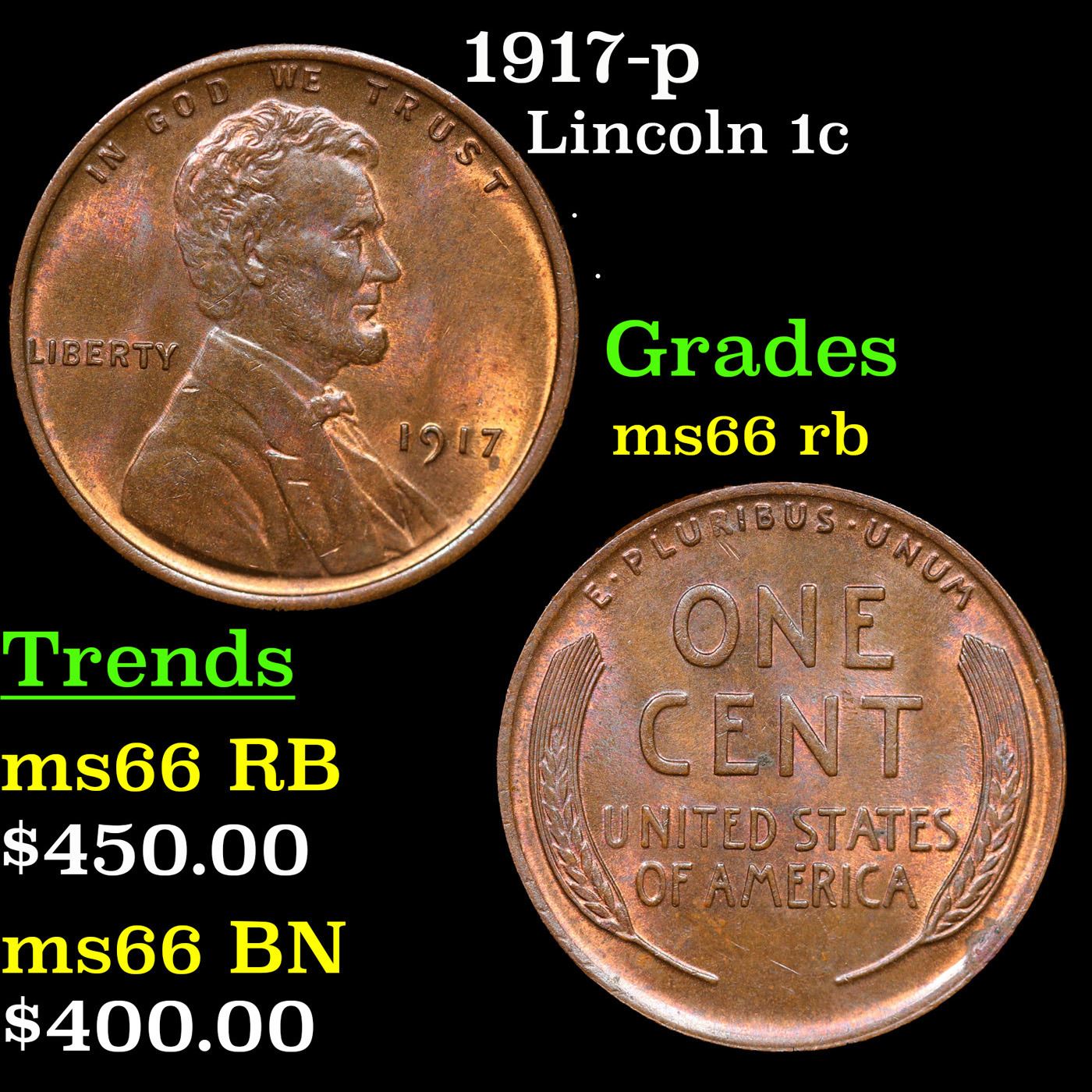 1917-p Lincoln Cent 1c Grades GEM+ Unc RB.