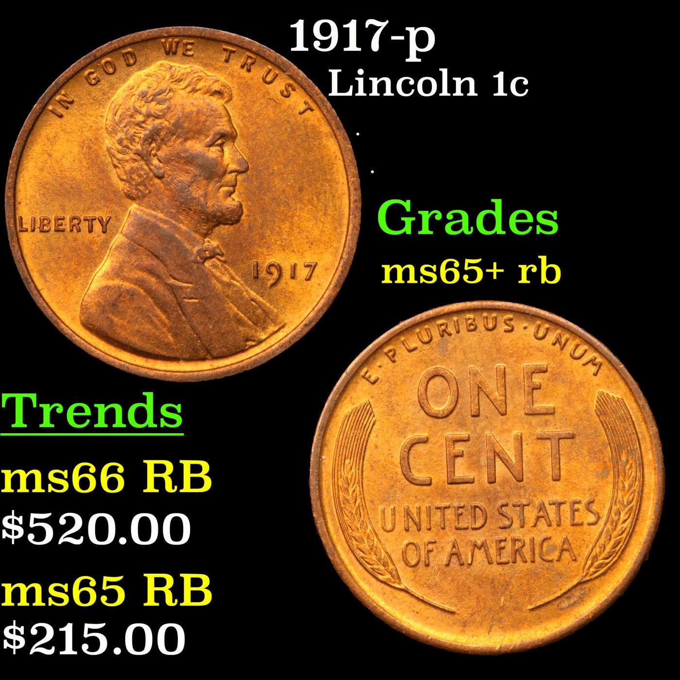 1917-p Lincoln Cent 1c Grades Gem+ Unc RB.