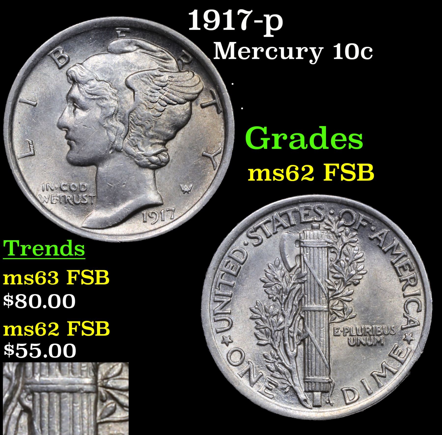 1917-p Mercury Dime 10c Grades Select Unc FSB.