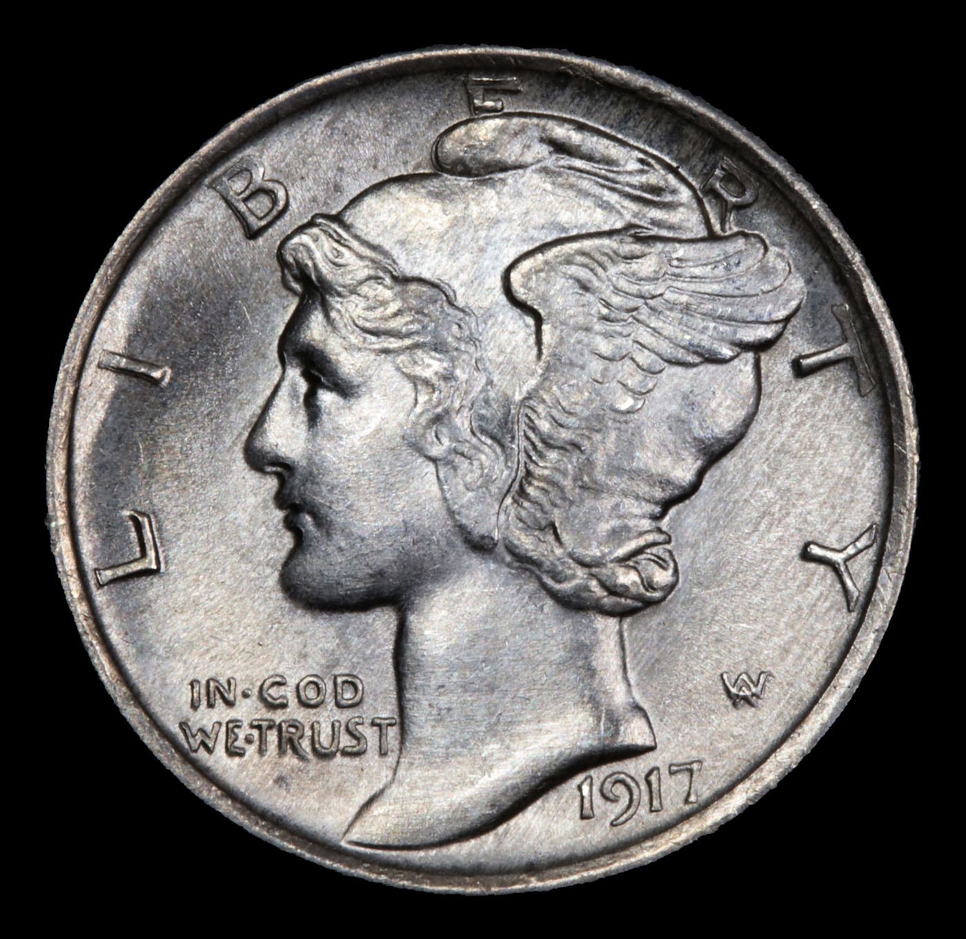 1917-p Mercury Dime 10c Grades Select Unc+ FSB.