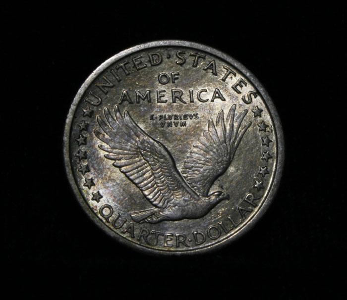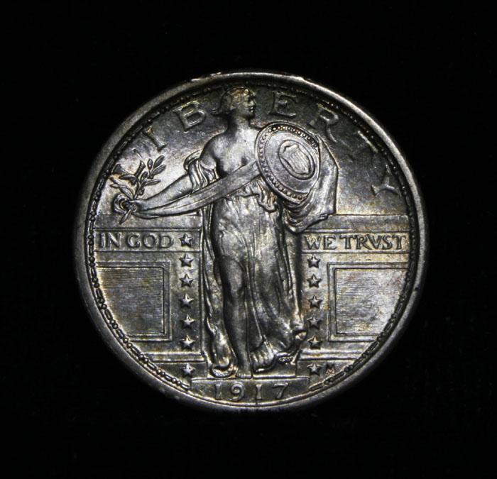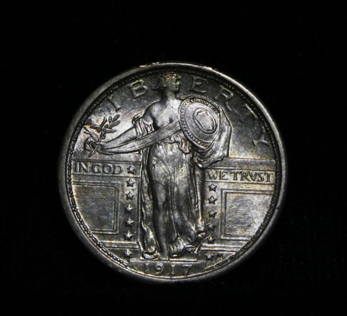 Bright White Example Golden toned with beautiful pastel colors running throughout the Obverse, and the gold alone on the reverse, a Dynamite coin and our sole Standing Liberty Quarter in this auction. Coin World's Coin Values lists ms64 FH at $700. Wholesale Greysheet Value of ms64 at $285+ and ms65 FH at $800, no ms64 FH listed. The Bluesheet Lists ms64 FH as $352. Estimated Value $400