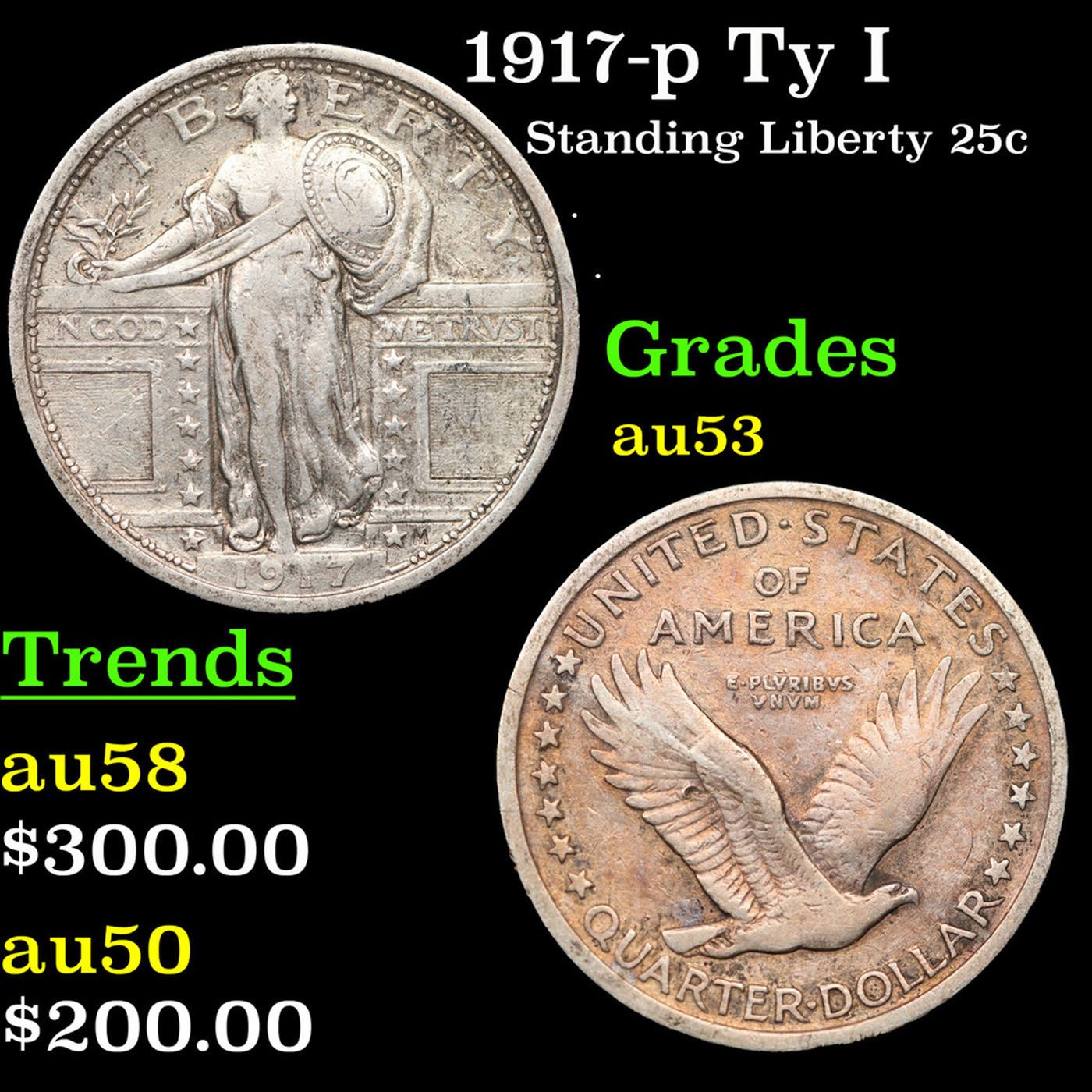 1917-p Ty I Standing Liberty Quarter 25c Grades Select AU.