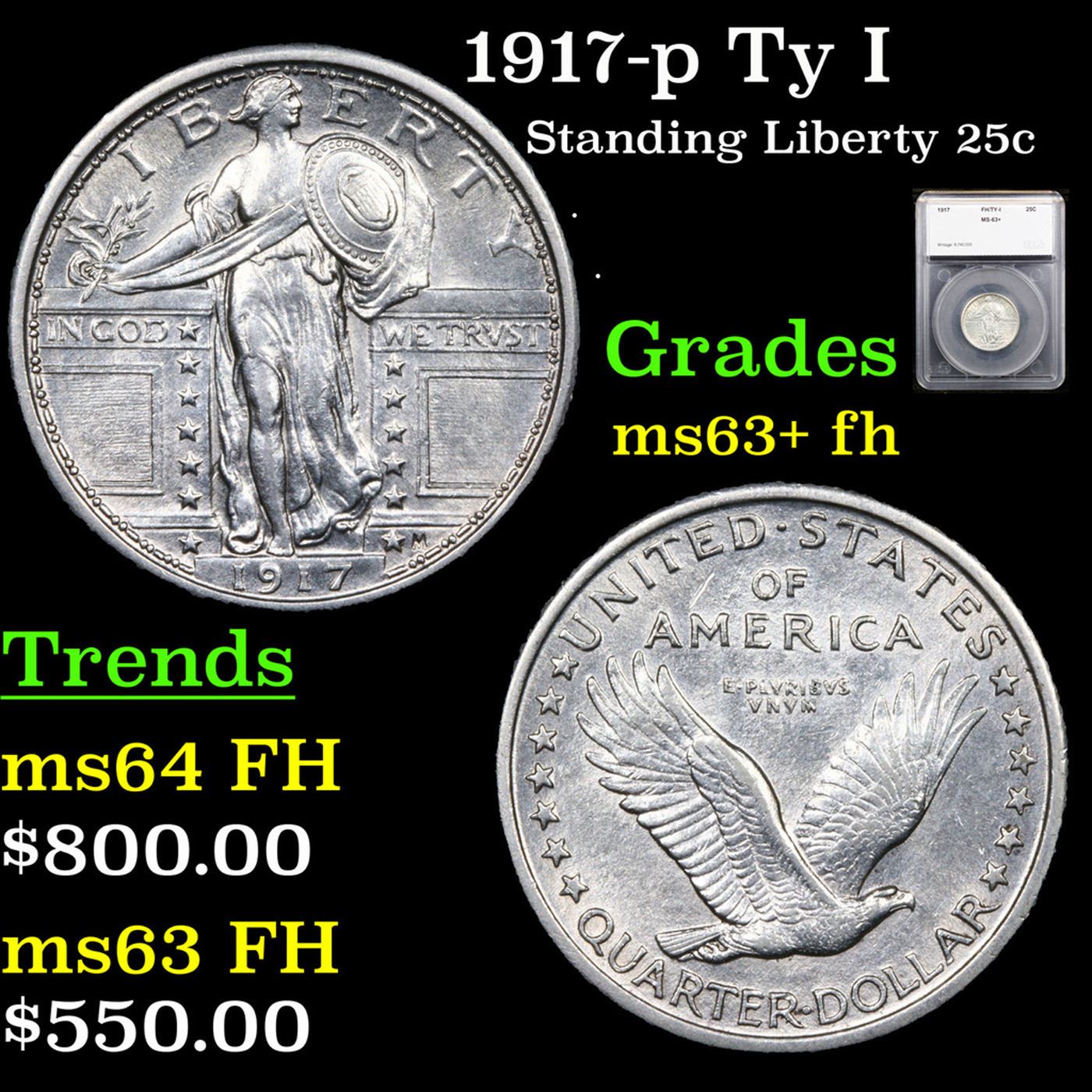 1917-p Ty I Standing Liberty Quarter 25c Grades Select Unc+ FH By SEGS.