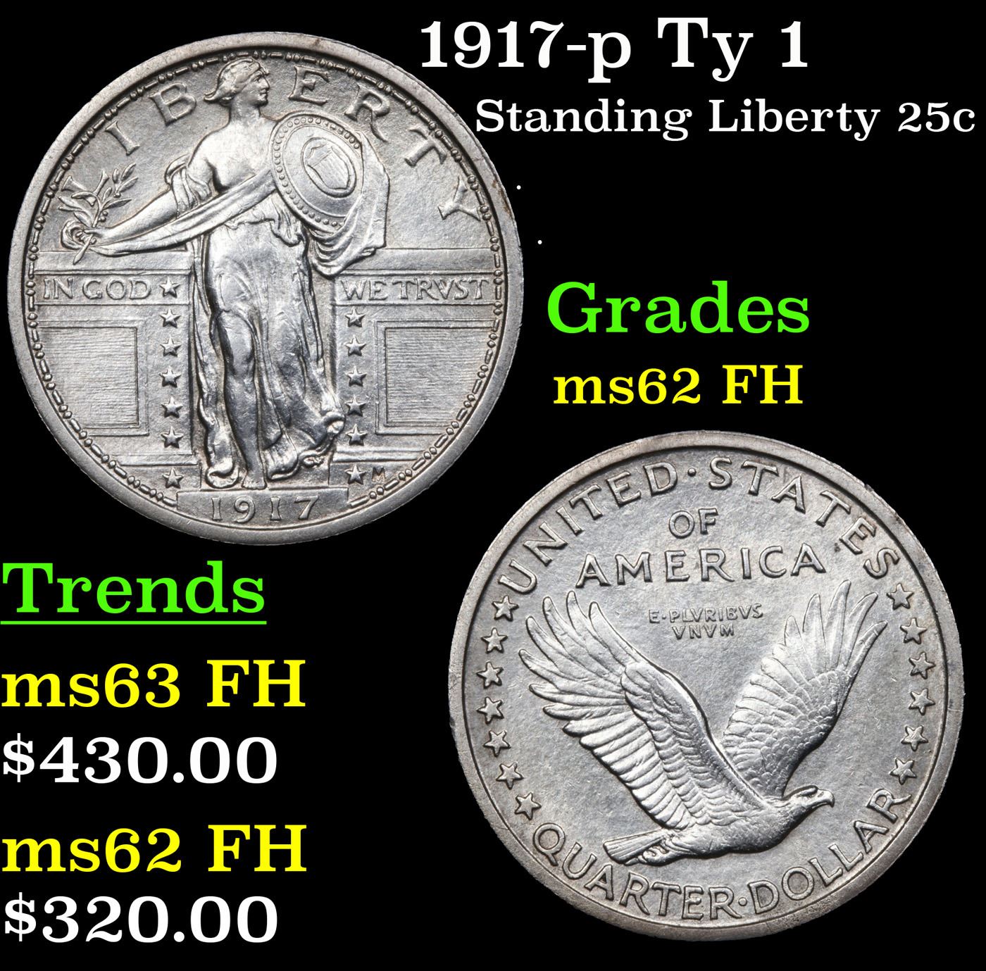 1917-p Ty I Standing Liberty Quarter 25c Grades Select Unc FH.