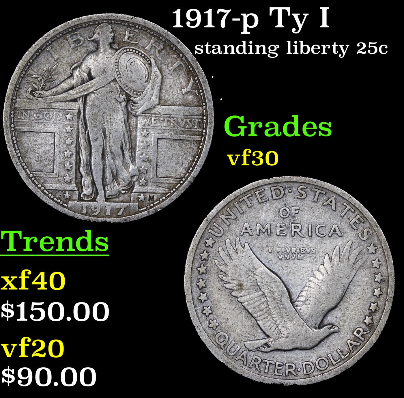 1917-p Ty I Standing Liberty Quarter 25c Grades vf++.