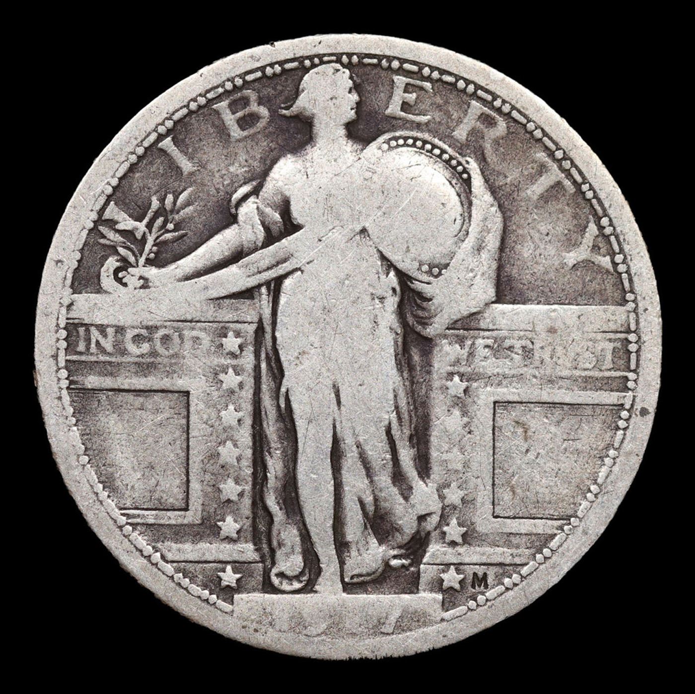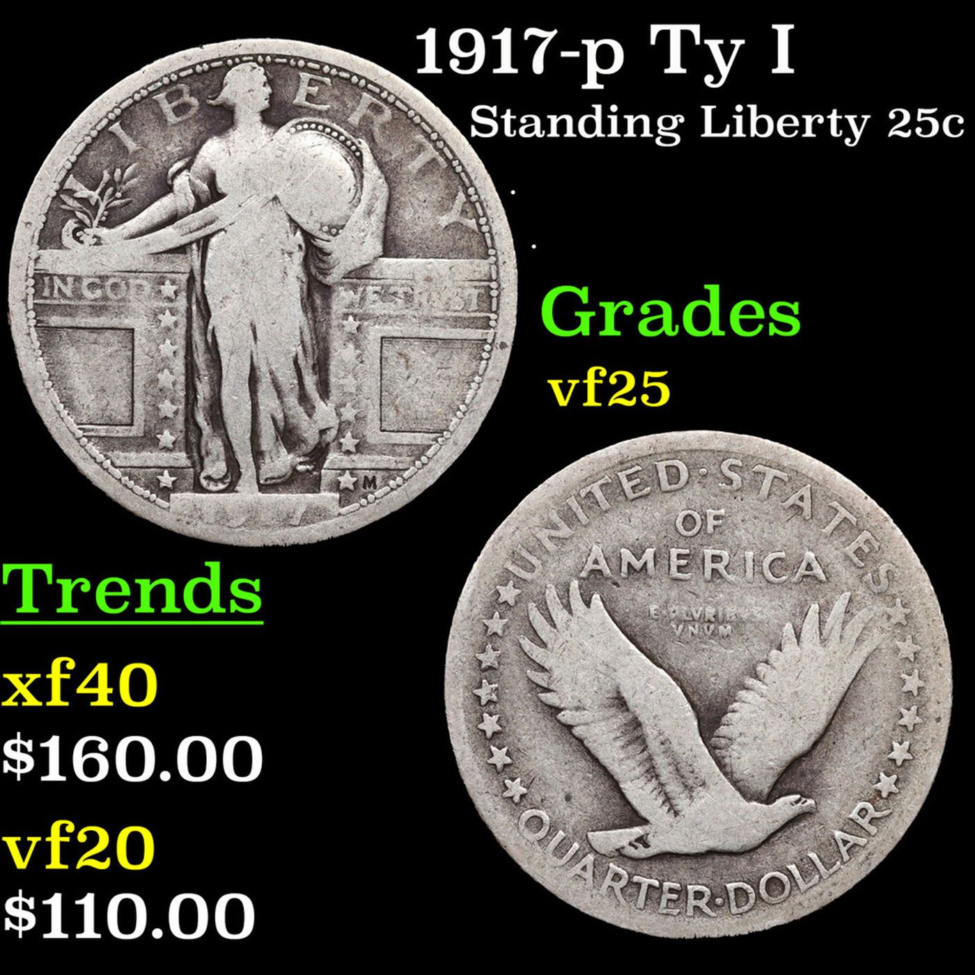 1917-p Ty I Standing Liberty Quarter 25c Grades vf+.