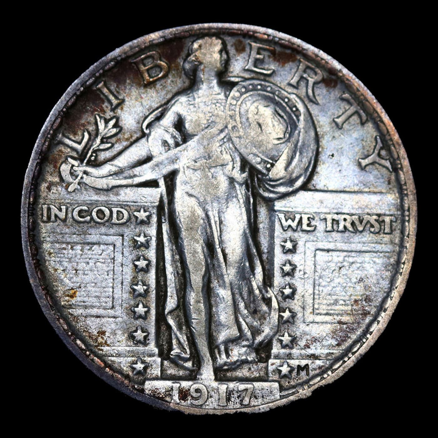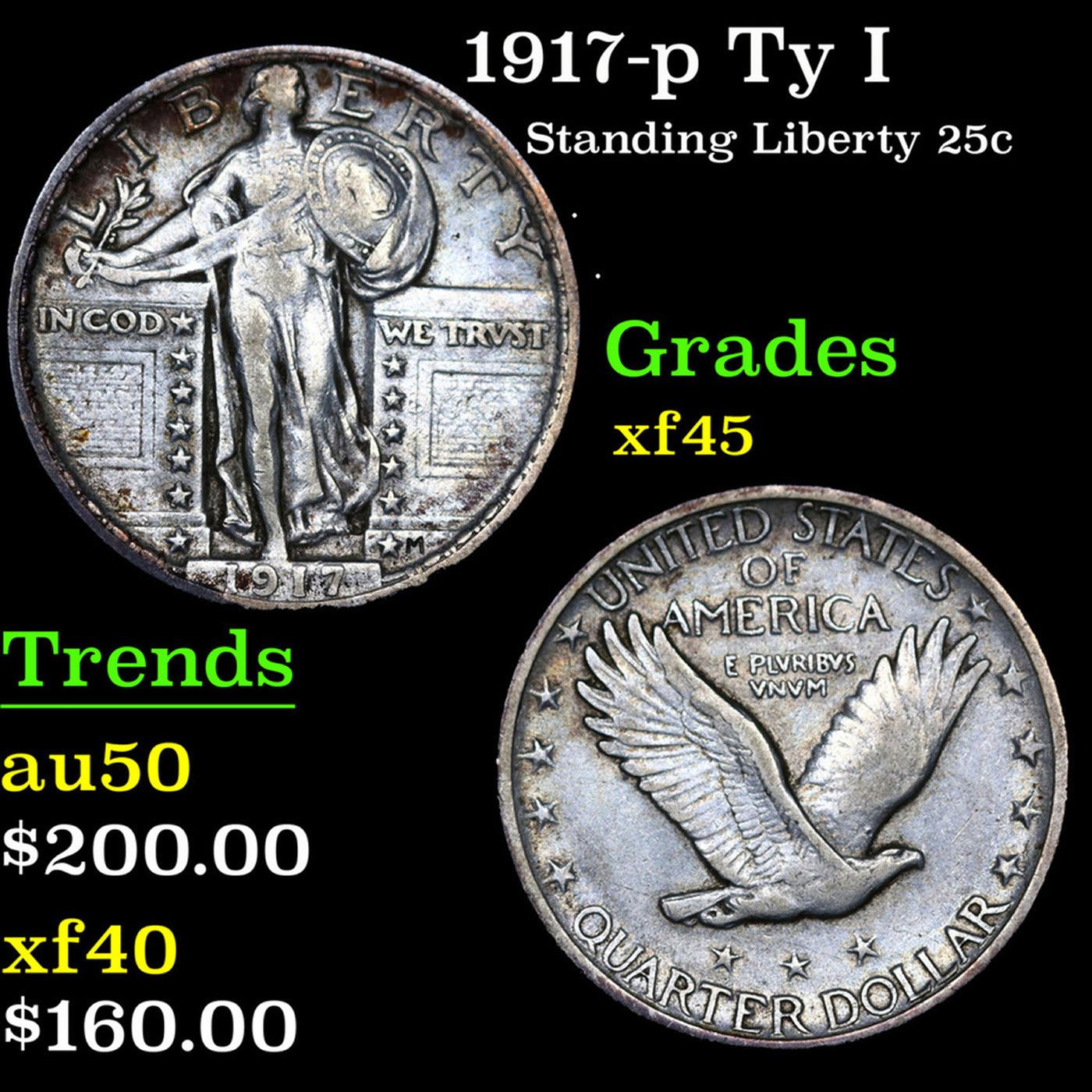 1917-p Ty I Standing Liberty Quarter 25c Grades xf+.