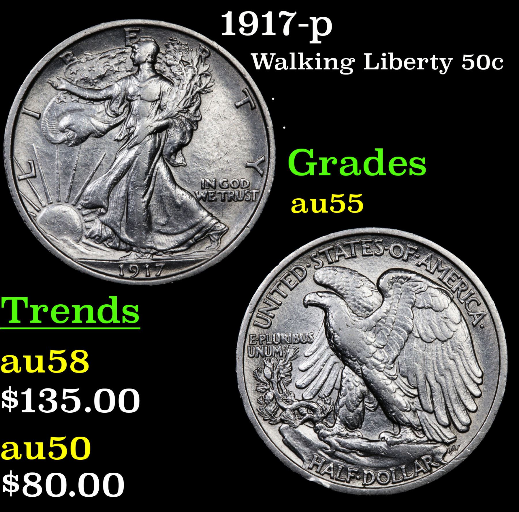 1917-p Walking Liberty Half Dollar 50c Grades Choice AU.