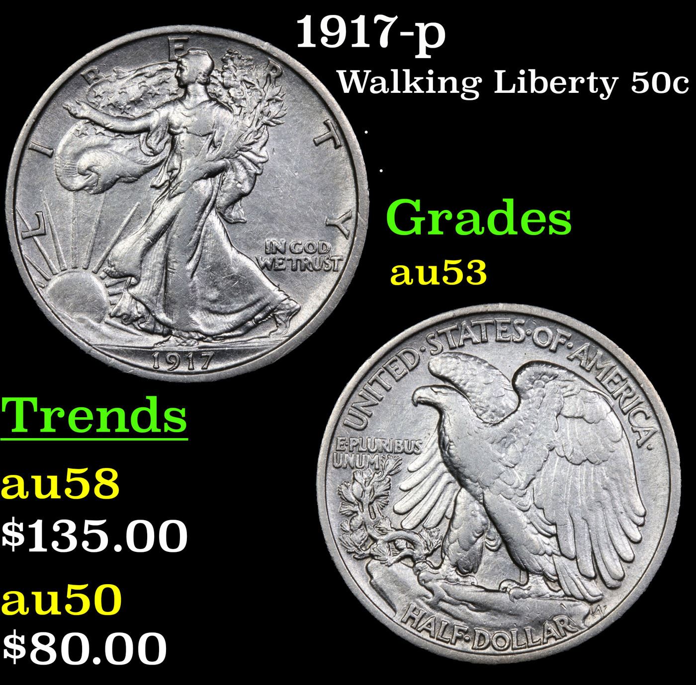 1917-p Walking Liberty Half Dollar 50c Grades Select AU.