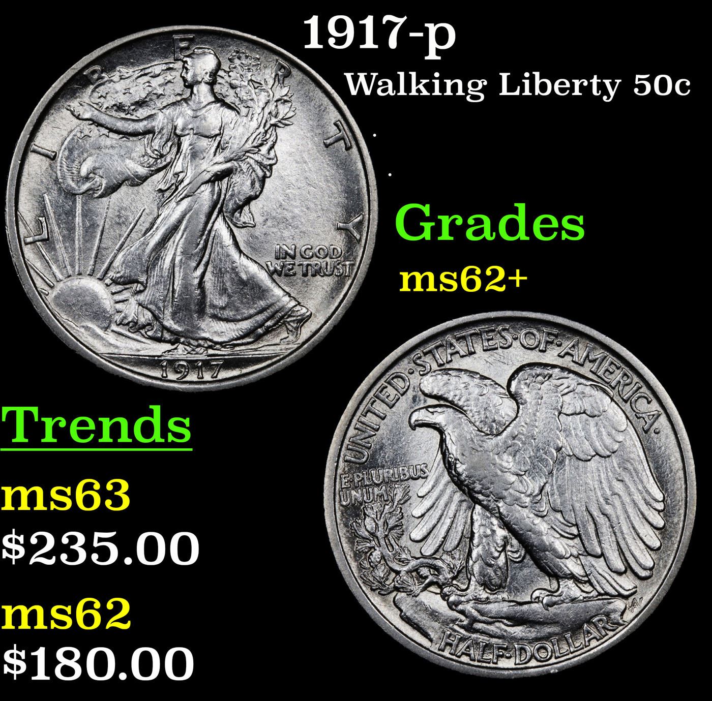 1917-p Walking Liberty Half Dollar 50c Grades Select Unc.