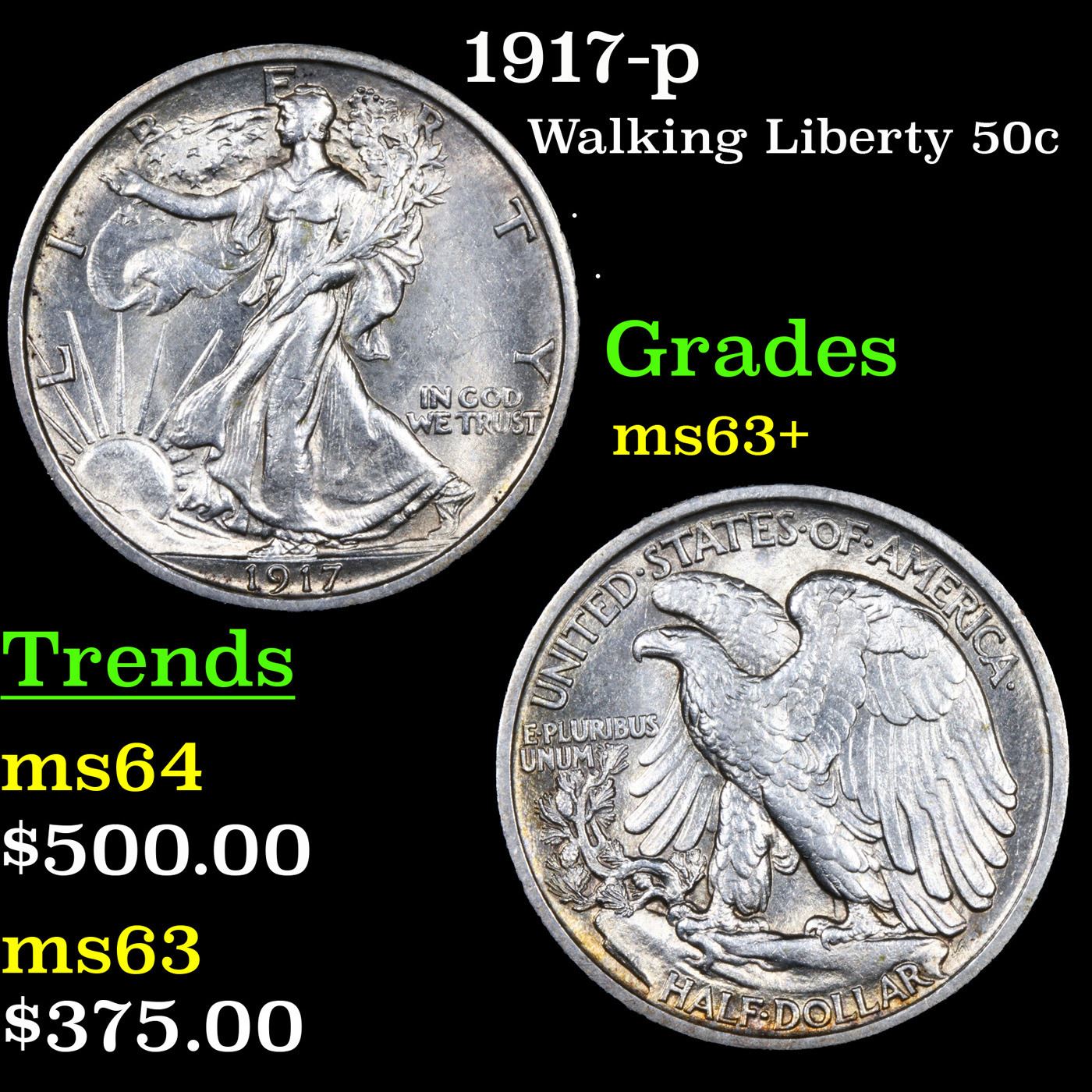 1917-p Walking Liberty Half Dollar 50c Grades Select+ Unc.