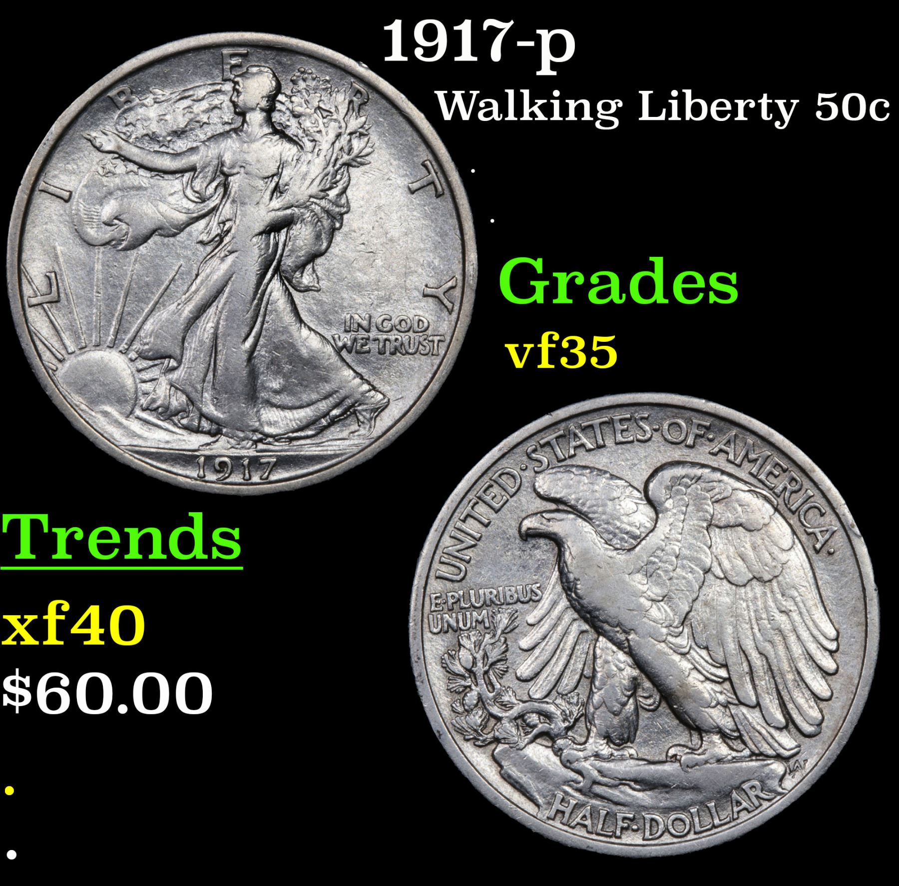 1917-p Walking Liberty Half Dollar 50c Grades vf++.