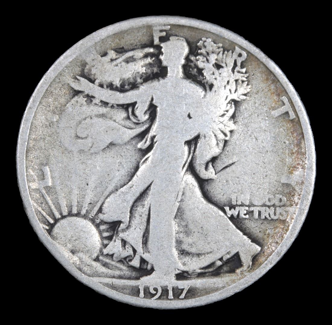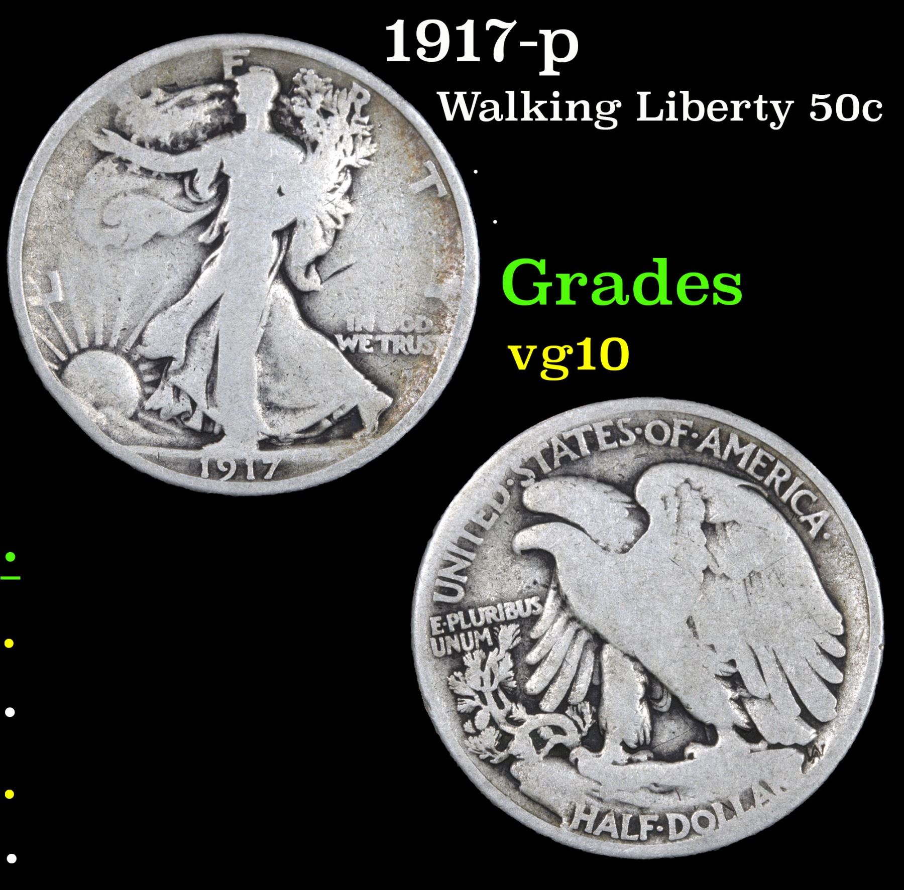 1917-p Walking Liberty Half Dollar 50c Grades vg+.