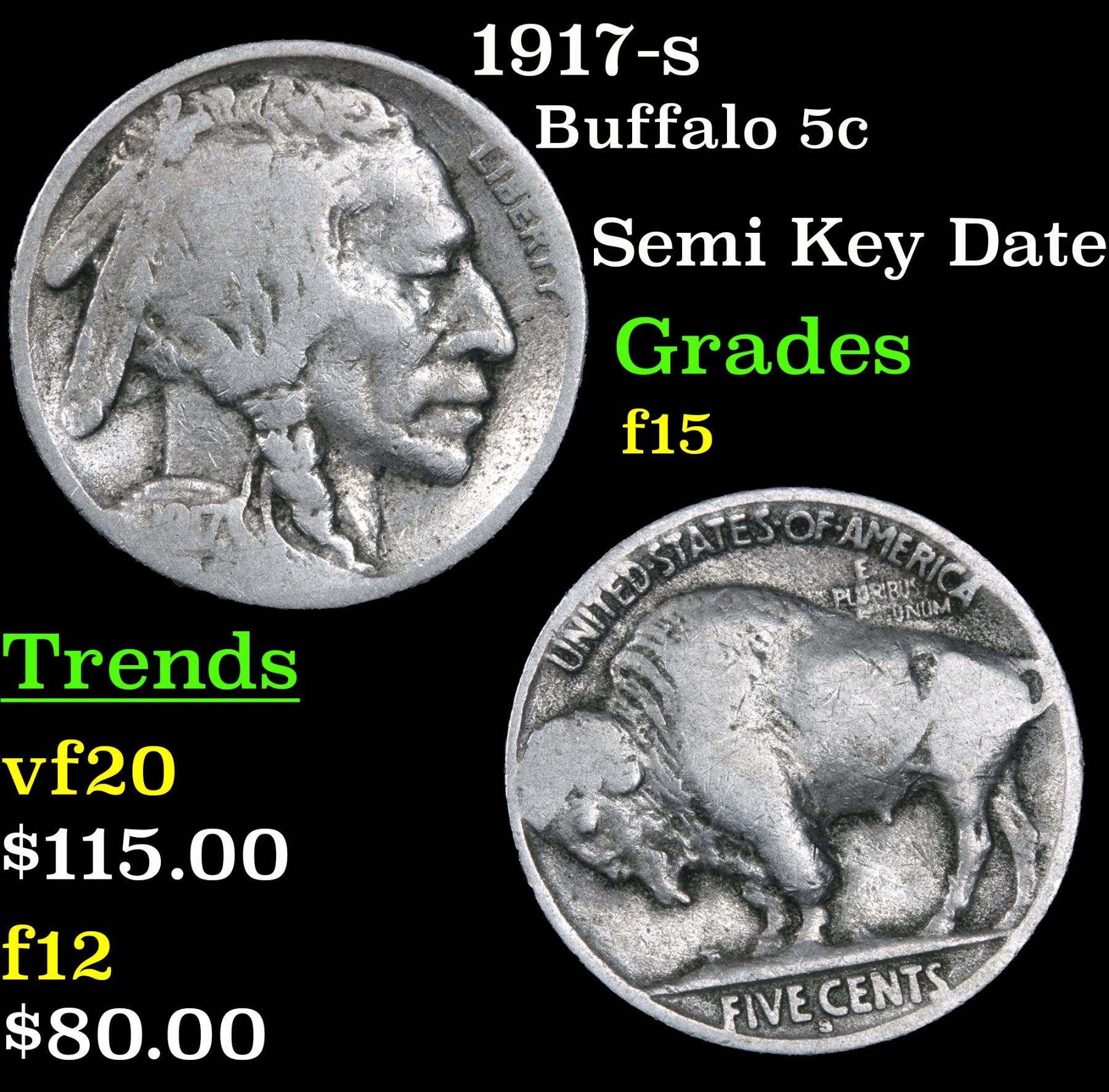 1917-s Semi Key Date . Buffalo Nickel 5c Grades f+.