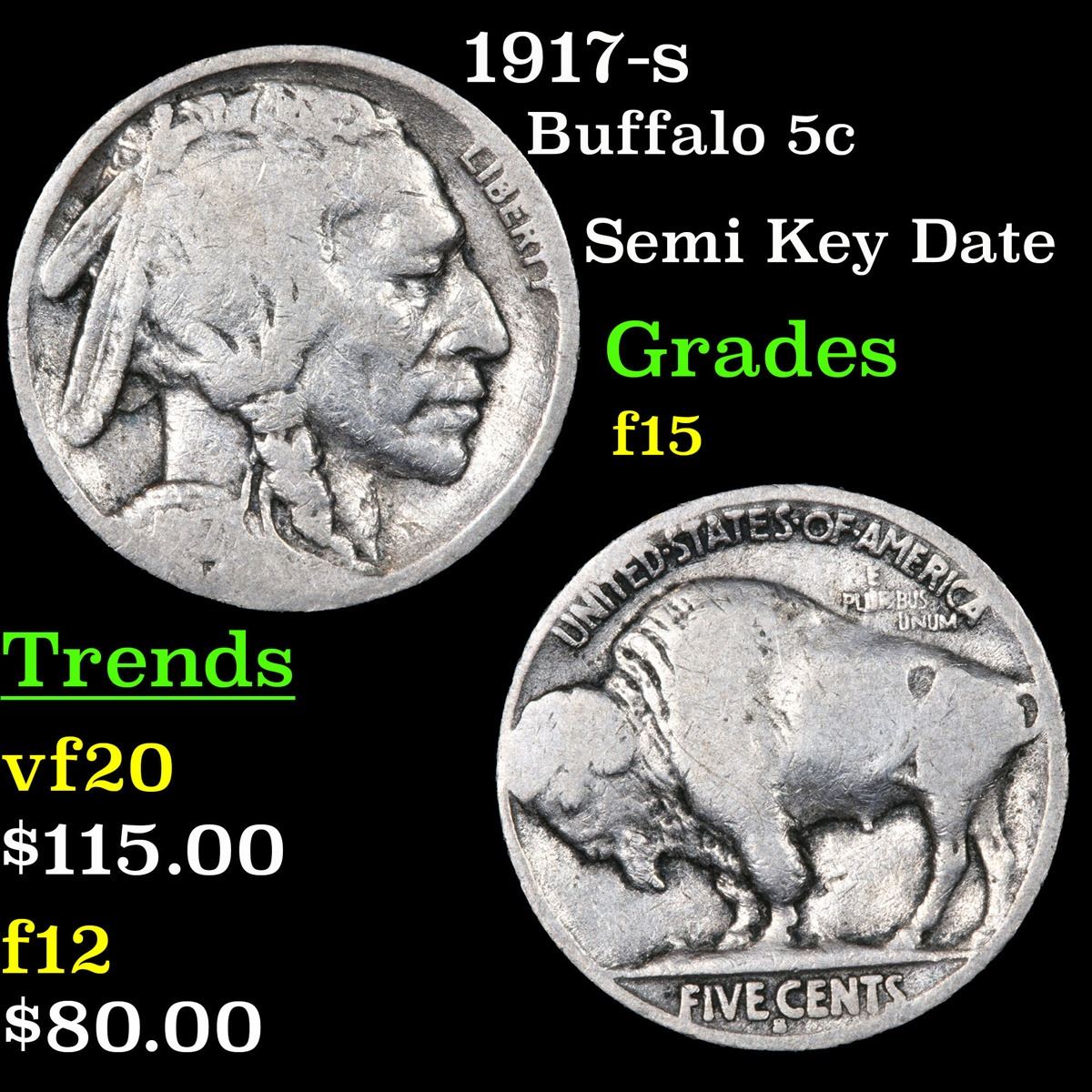 1917-s Semi Key Date . Buffalo Nickel 5c Grades f+.