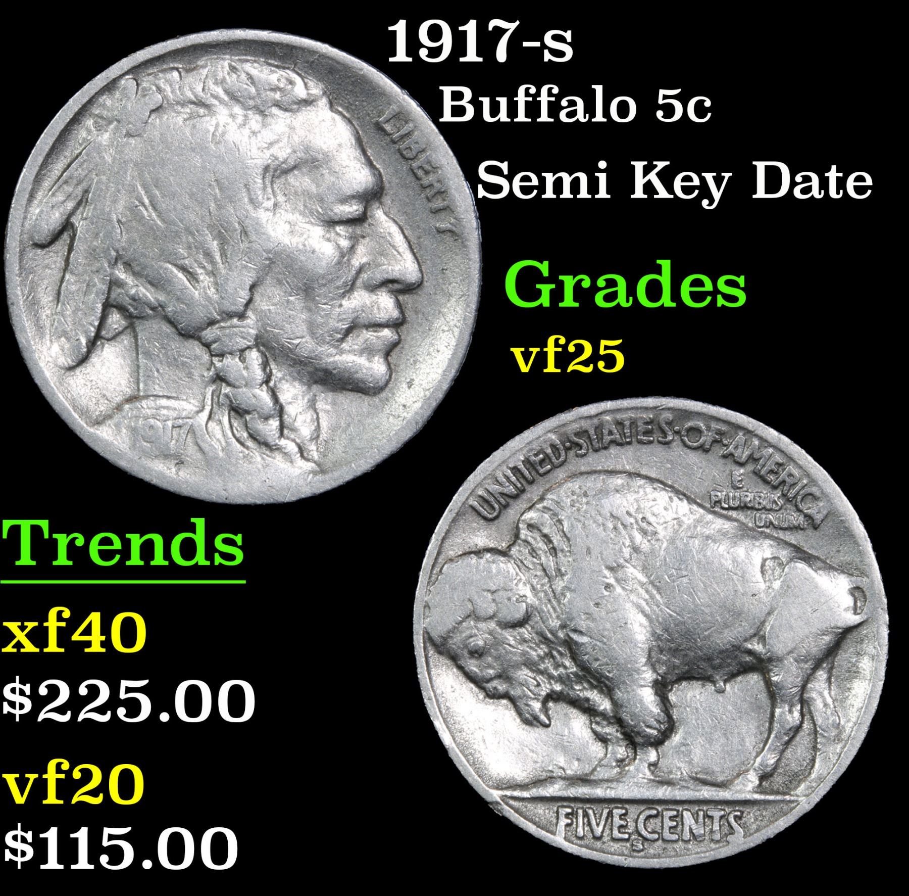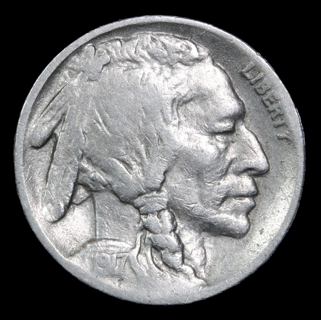 1917-s Buffalo Nickel 5c Grades vf+. Semi Key Date