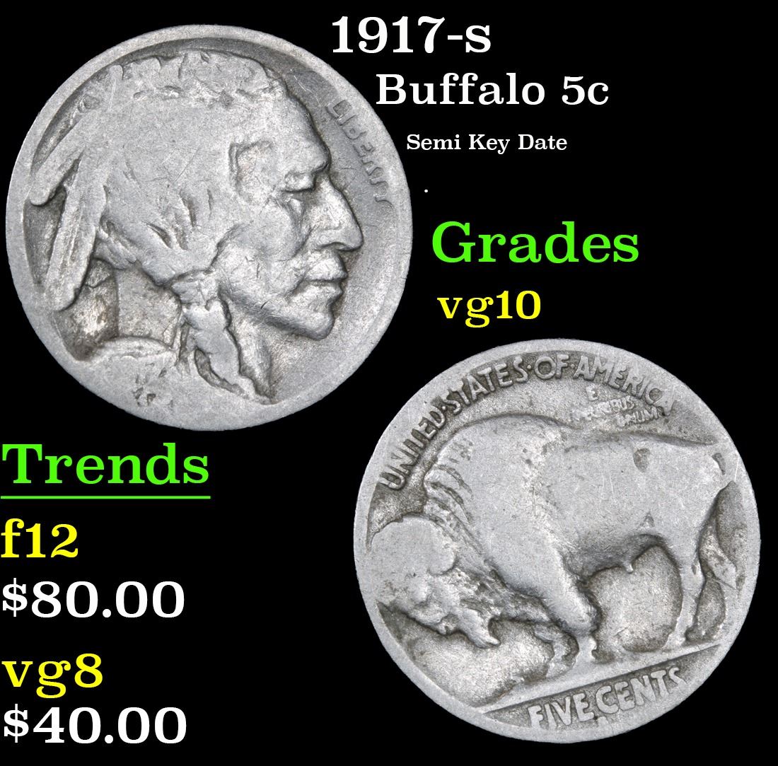 1917-s Semi Key Date . Buffalo Nickel 5c Grades vg+.
