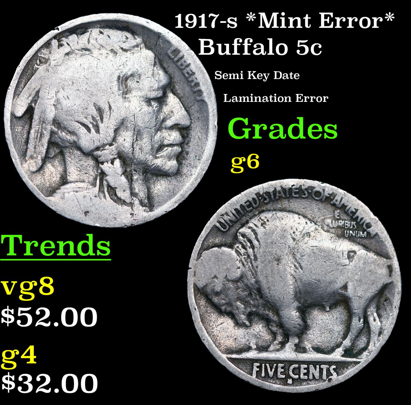 1917-s *Mint Error* Buffalo Nickel 5c Grades g+.
