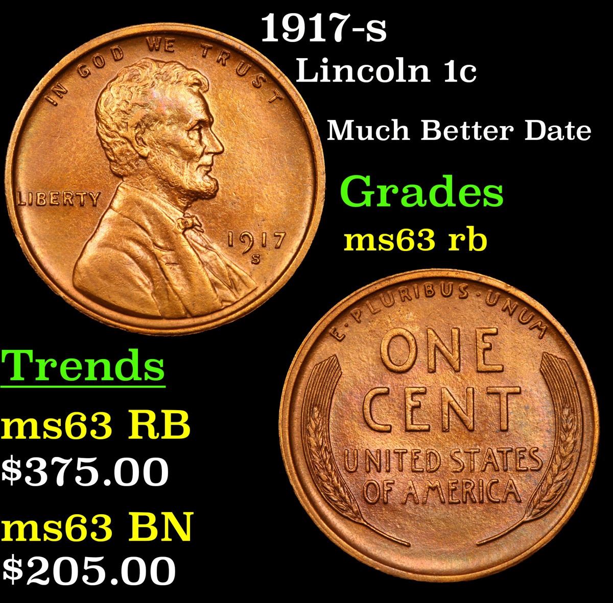 1917-s Lincoln Cent 1c Grades Select Unc RB.