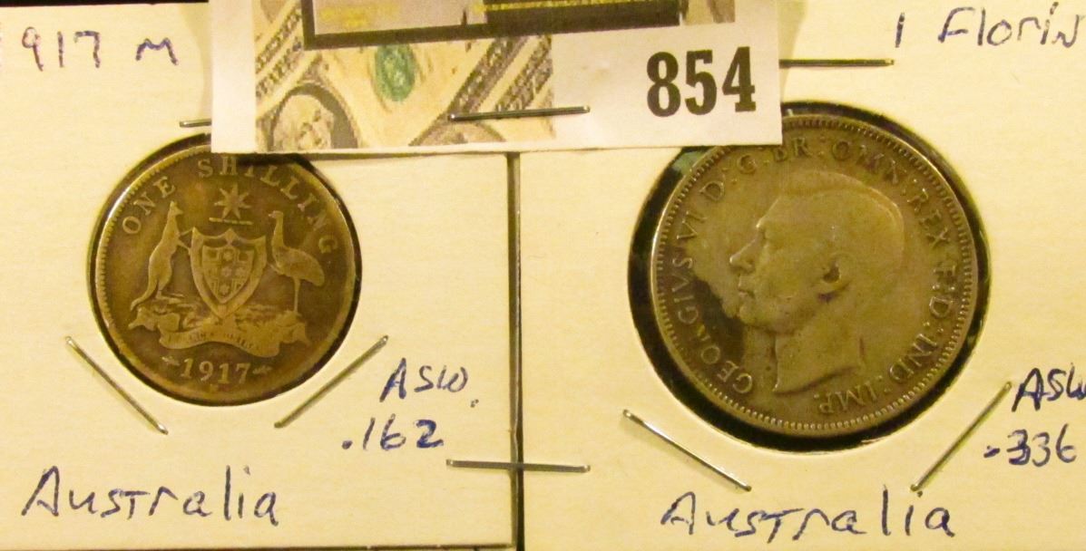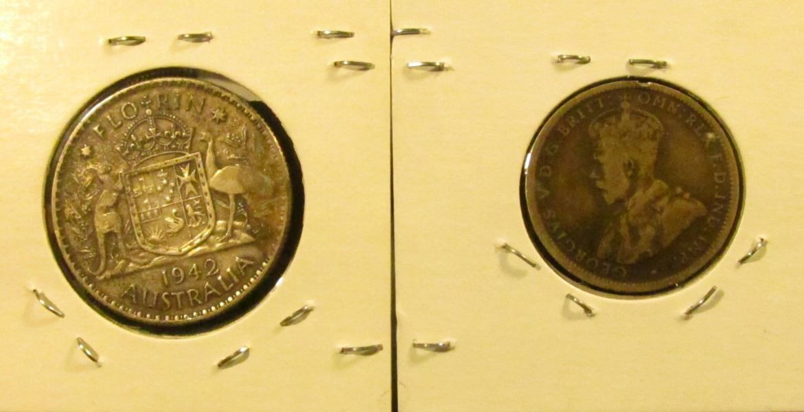 1917M Silver Schilling VG & 1942 Silver Florin, Fine Australia.