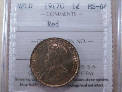 1917c 1¢ Nfld ICCS MS64Red 90% red lustre, scarce in this condition!