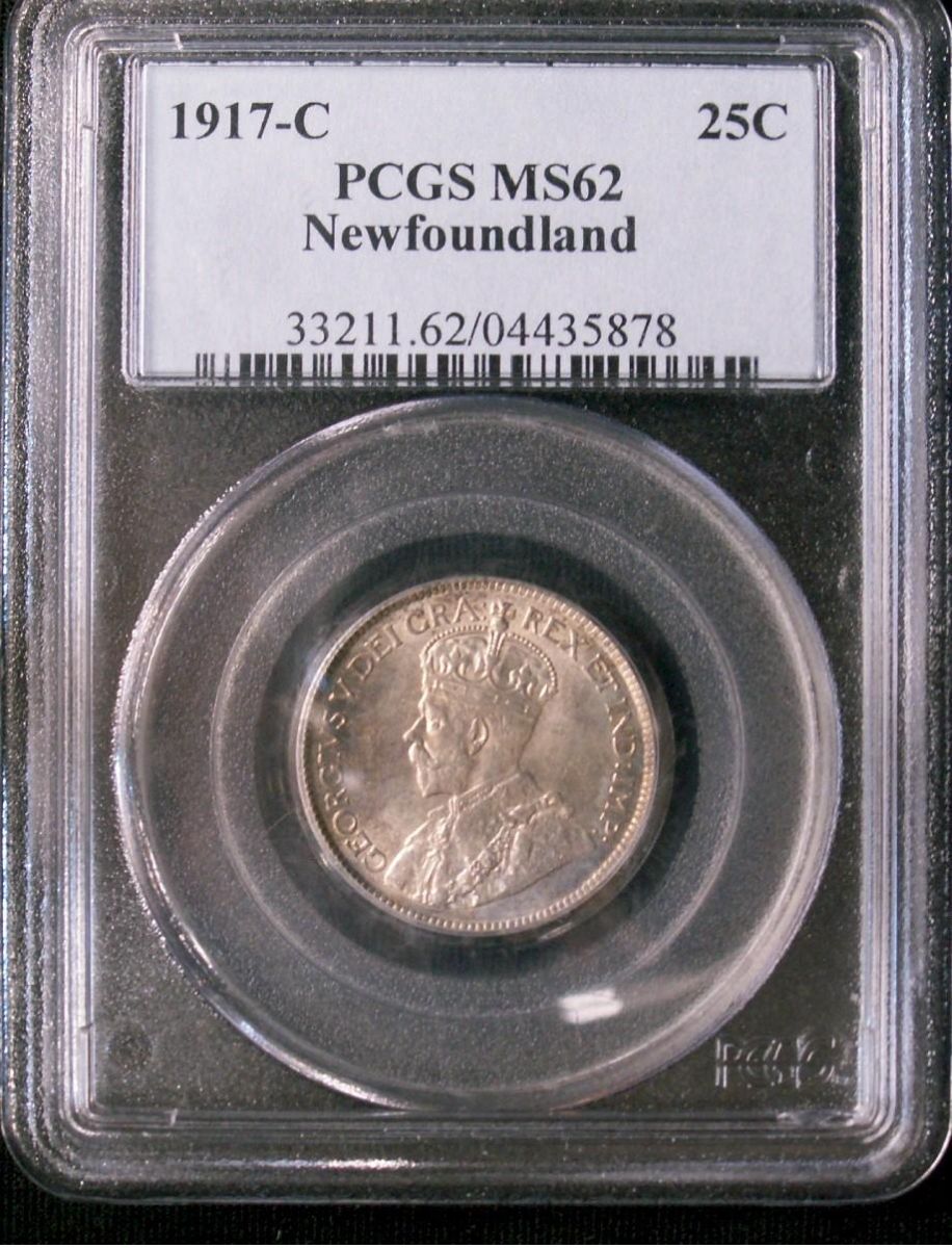 1917c NFLD 25¢ PCGS MS62, boldly struck.