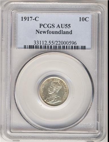 1917c Nfld 10¢. A nice fully struck example and problem free. PCGS AU55