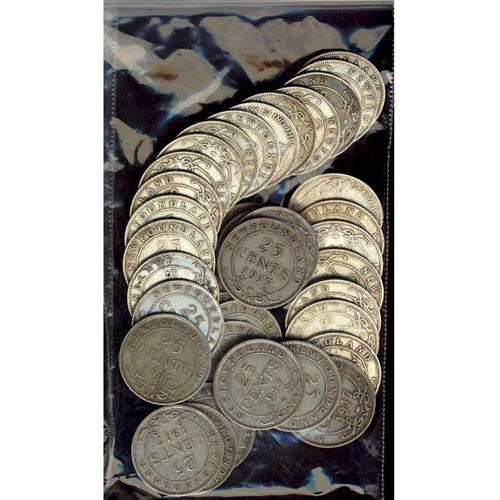 1917c Nfld 25¢. Lot of 40 pcs. A nice lot of problem free coins VG to VF+.