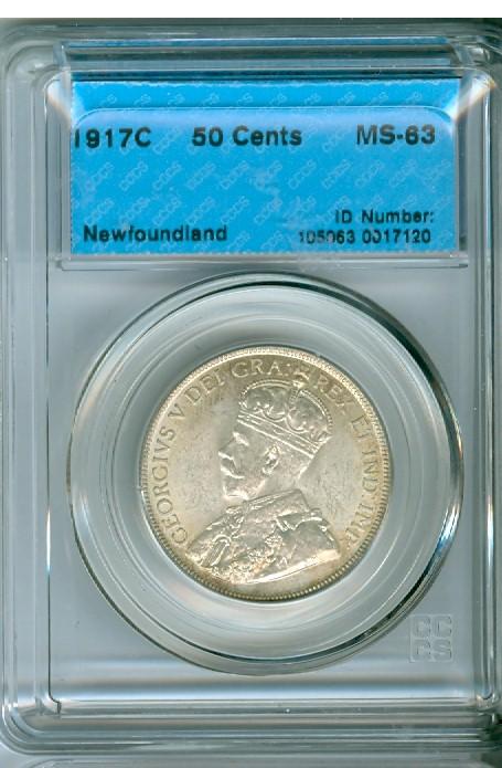 1917c Nfld 50¢ CCCS MS63, Touch of gold otherwise brilliant. Excellent strikes and clean fields